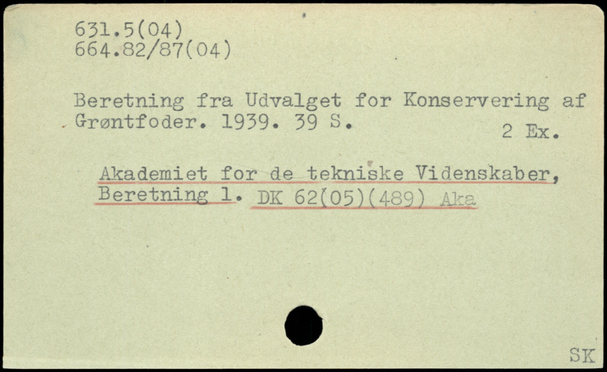 Beretning fra Udvalget for Konservering af. Grøntfoder. 1939. 39 8. 2 Ex Akademiet for de tekniske Videnskaber, Beretning 1. DK 62(05)(489) Aka