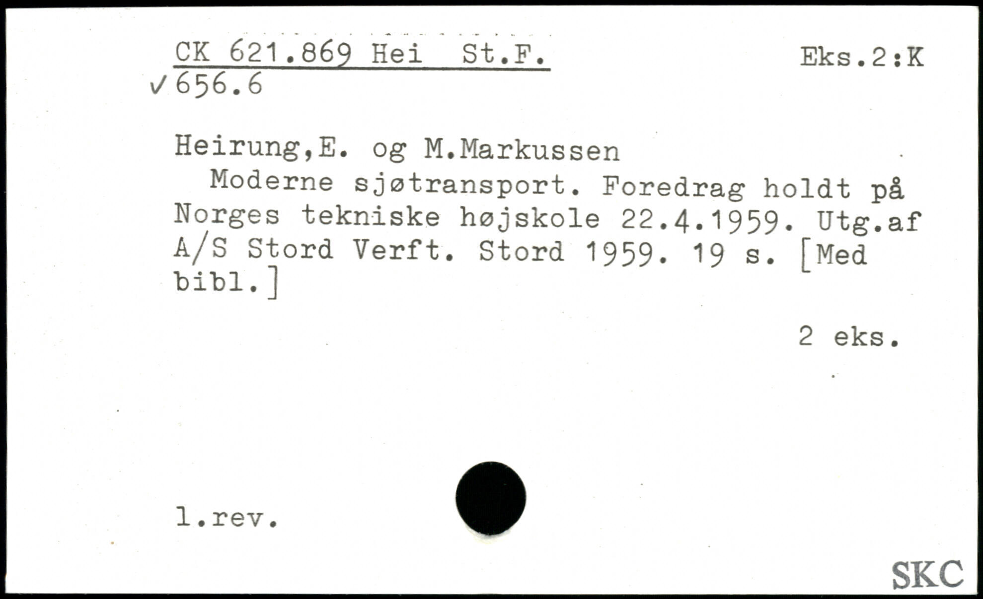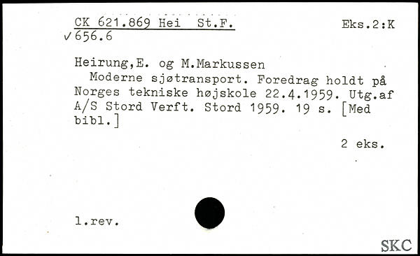 Moderne sjøtransport. Foredrag holdt på Norges tekniske højskole 22.4.1959. Utg.af A/S Stord Verft. Stord 1959.