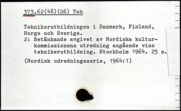 Teknikerutbildningen i Danmark, Finland, _ Norge och Sverige, 2: Betänkande avgivet av Nordiska kulturkommissionens utredning angående viss teknikerutbildning. Stockholm 196.t.