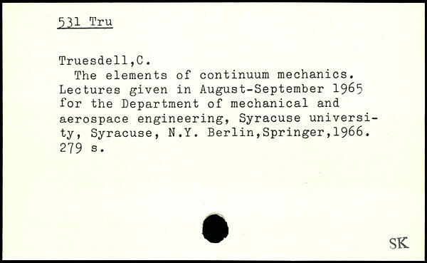 The elements of continuum mechanics. Lectures given in August-September 19^5 for the Department of mechanical and aerospace engineering, Syracuse university, Syracuse, N.Y.