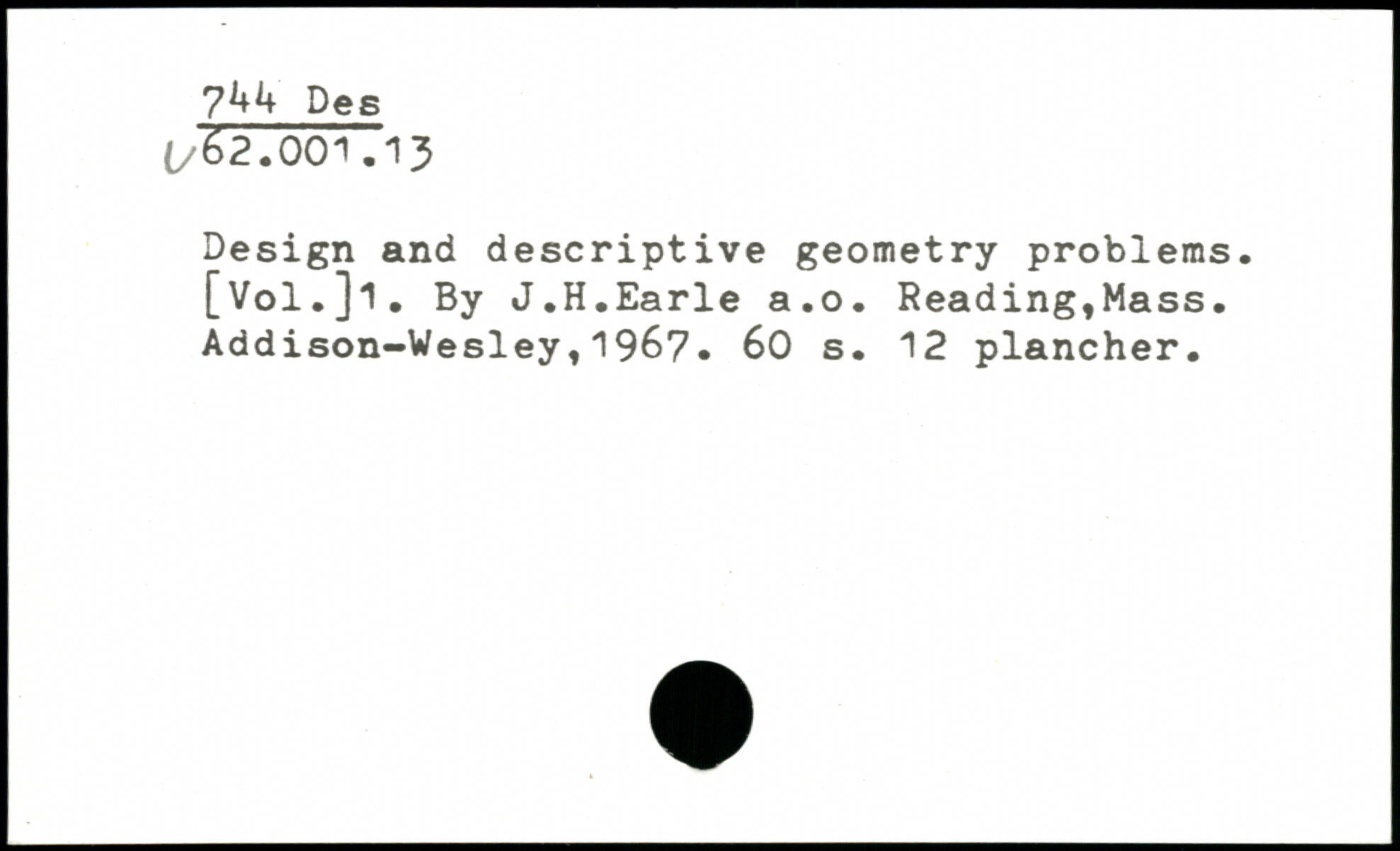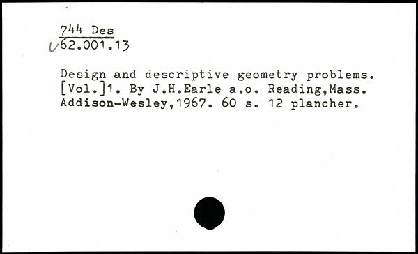 Design and descriptive geometry problems. [Vol.]l. By J.H.Earle a.o. Reading,Mass. Addison-Wesley,1967.