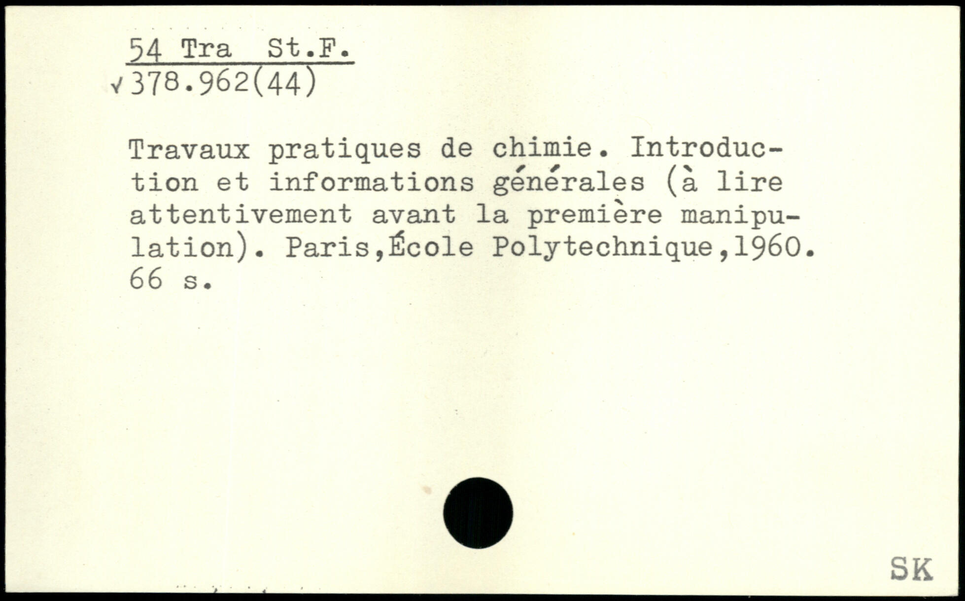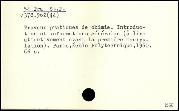 Travaux pratiques de chimie. Introduction et informations generales (à lire attentivement avant la première manipulation). Paris,École Polytechnique,1960.