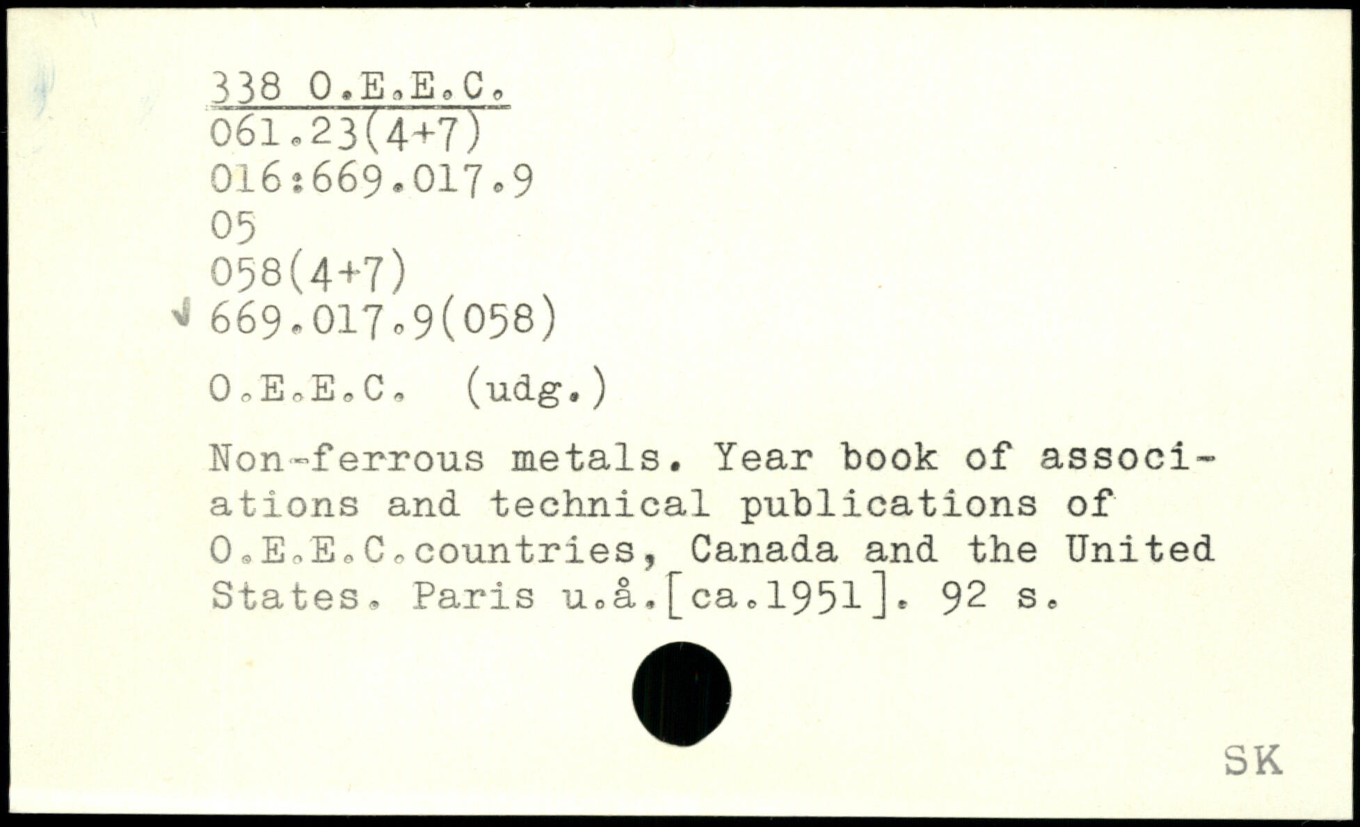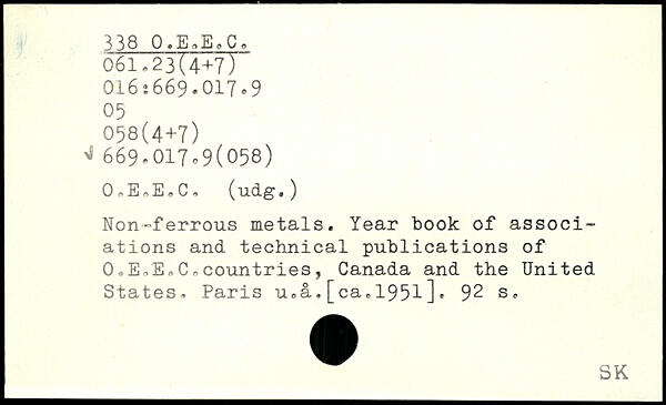 Non-ferrous metals. Year book of associations and technical publications of 0,E,E,C,countries, Canada and the United States. Paris u.a,[ca,1951]