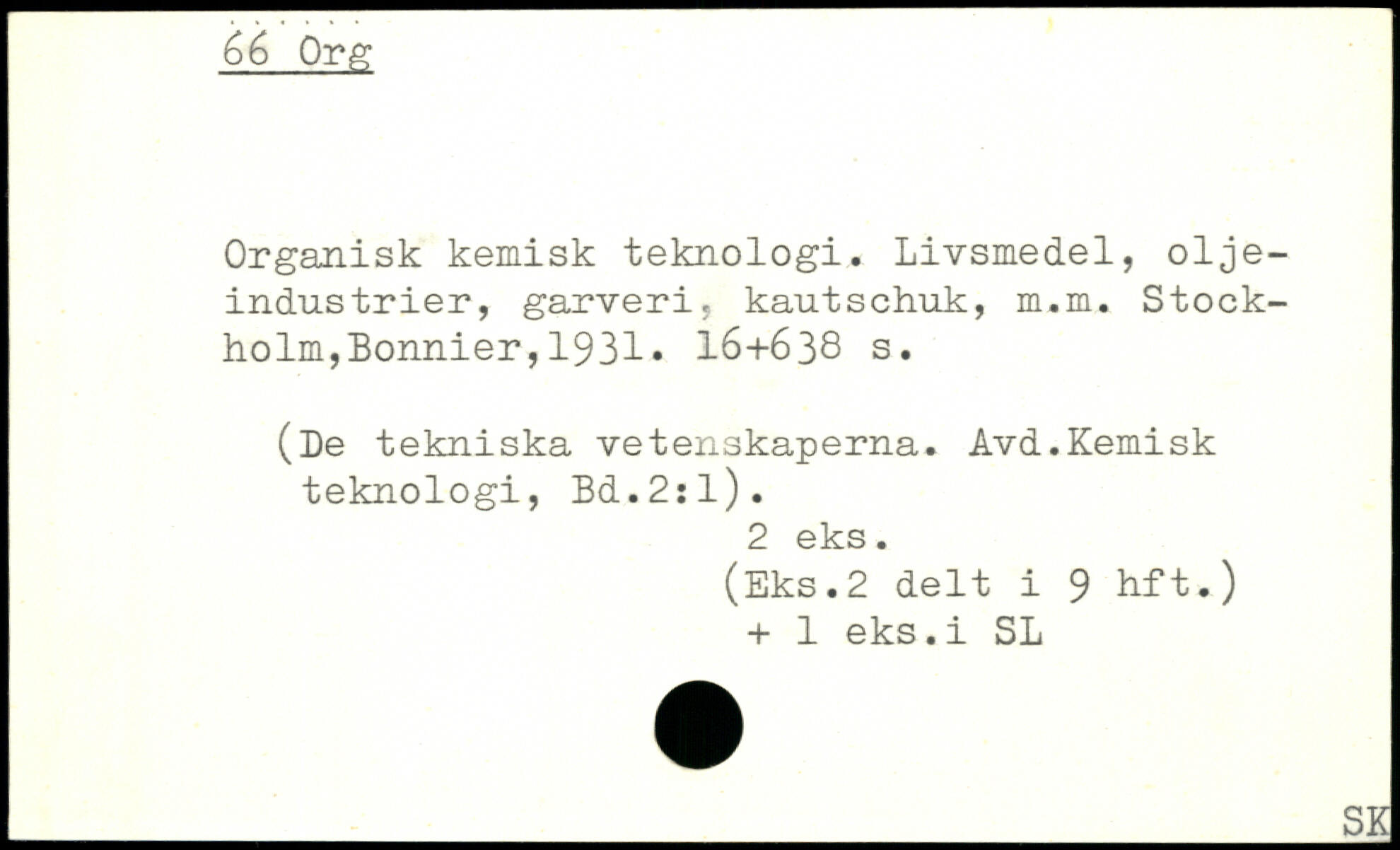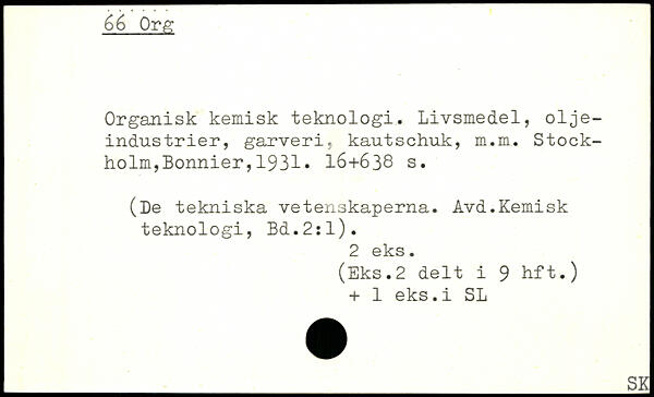 Organisk kemisk teknologi. Livsmedel, oljeindustrier, garveri, kautschuk, m.m.
