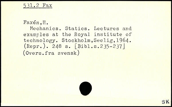 Mechanics. Statics. Lectures and examples at the Royal institute of technology.