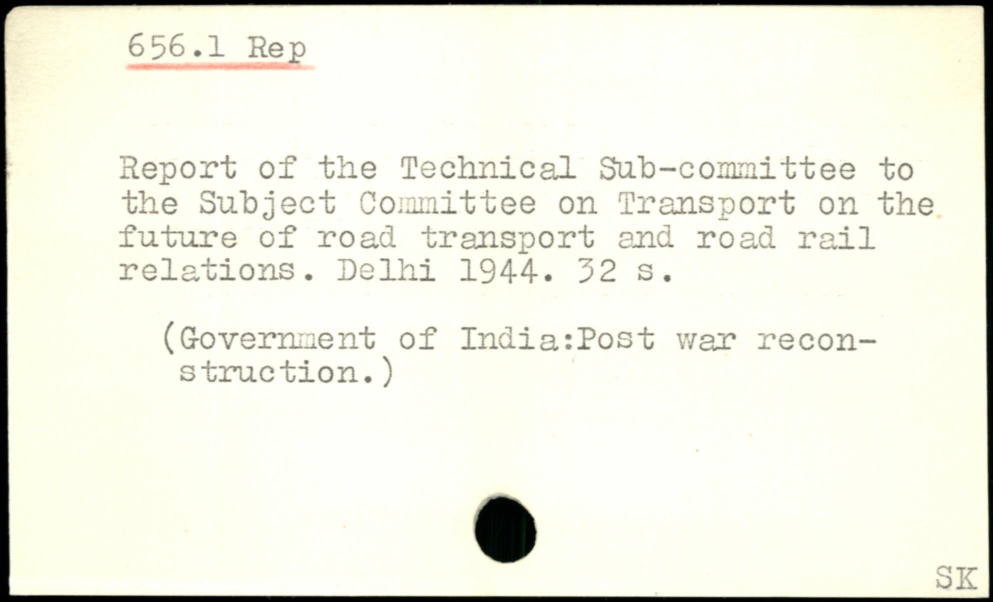 Report of the Technical Sab-committee to the Subject Committee on Transport on the future of road transport and road rail relations. Delhi 1944.