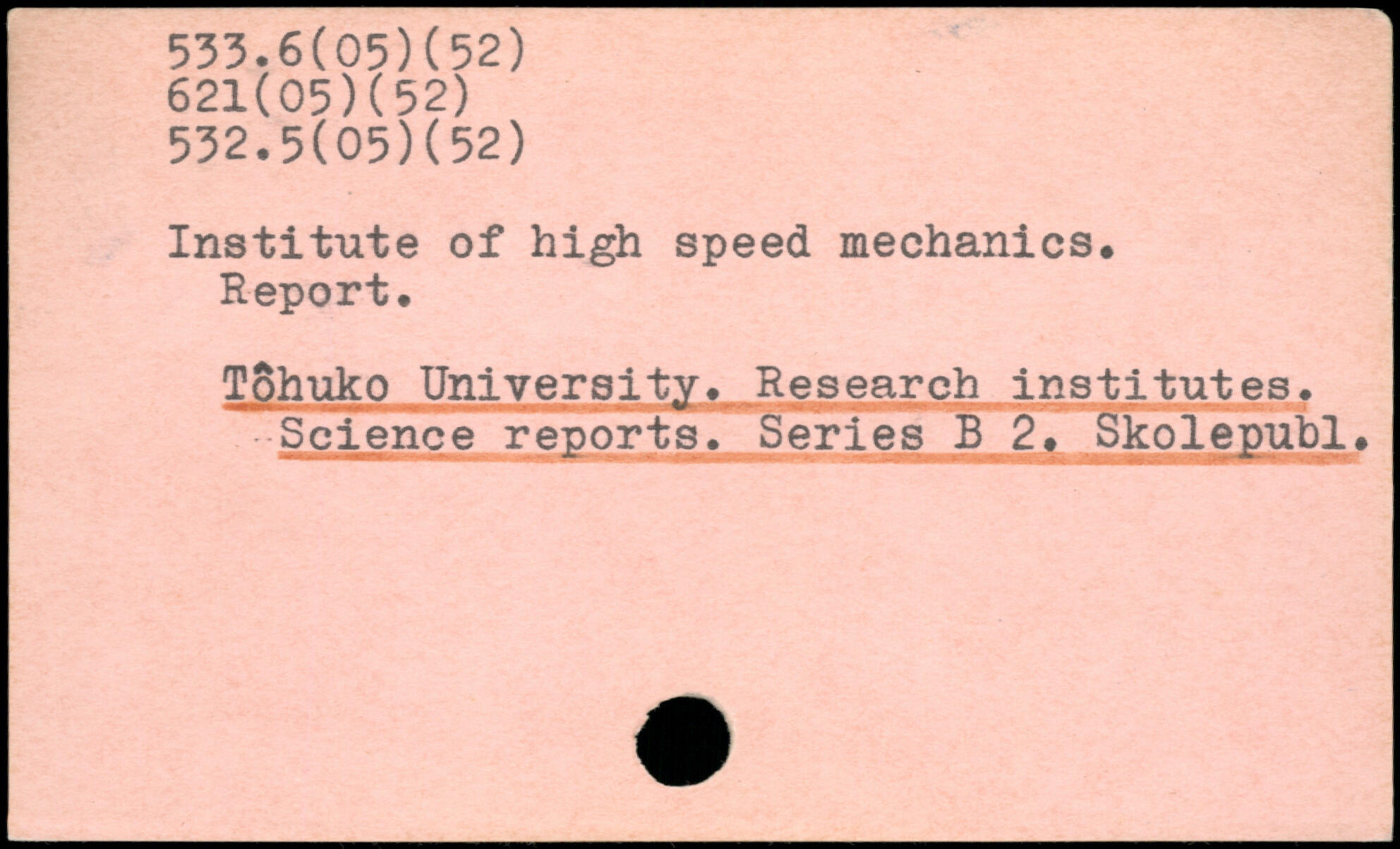 Institute of high speed mechanics. Report. Tohuko University. Research institutes. Science reports. Series B 2. Skolepuhl.