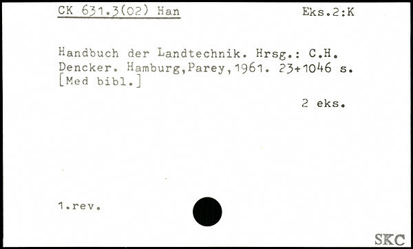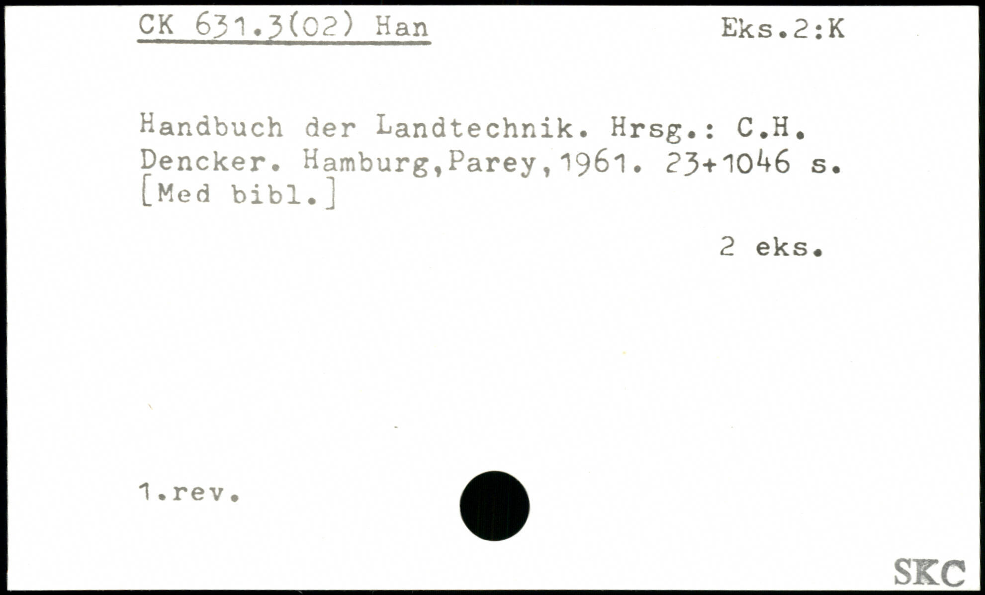 Handbuch der Landtechnik. Hrsg.: C.H. Dencker.