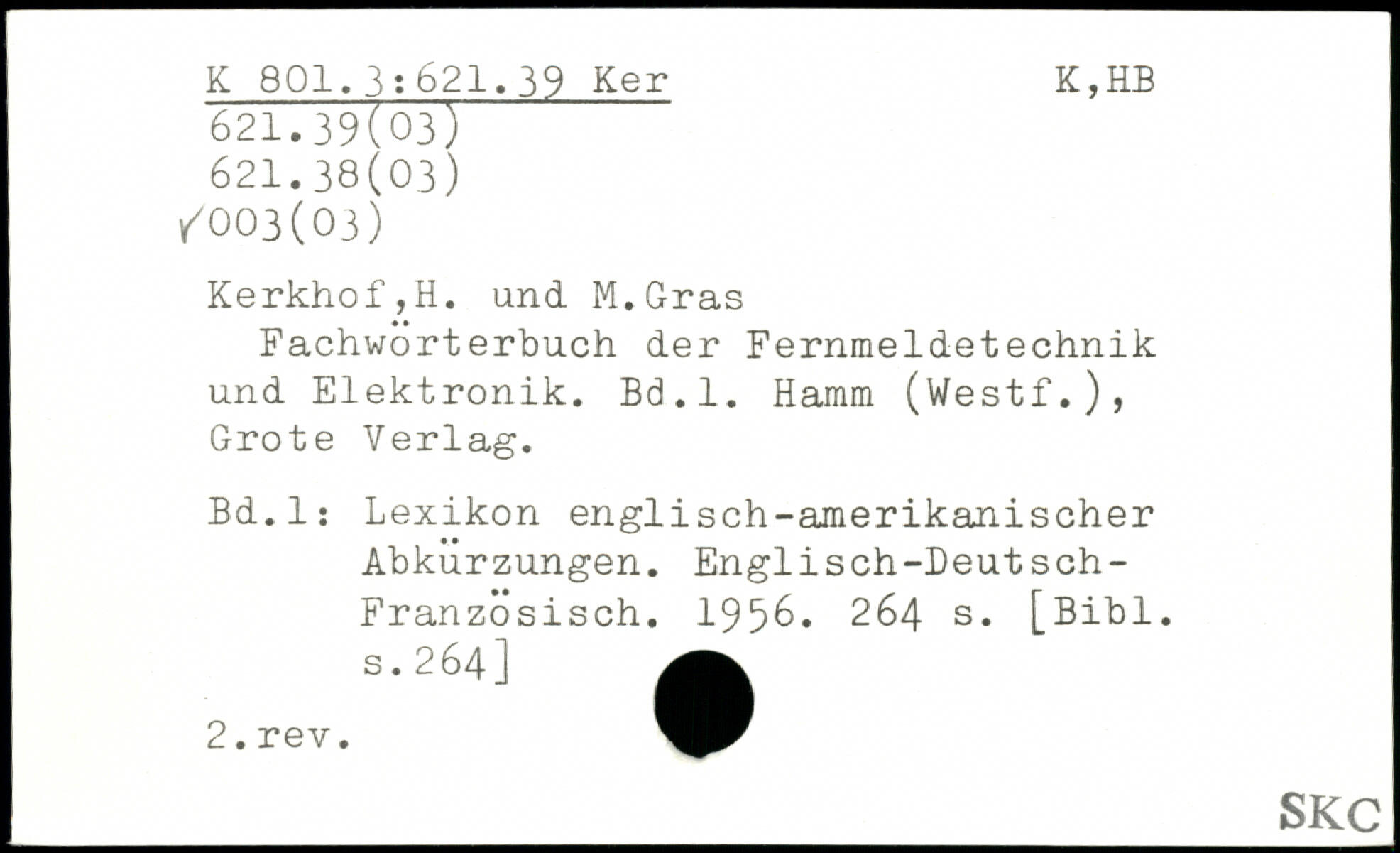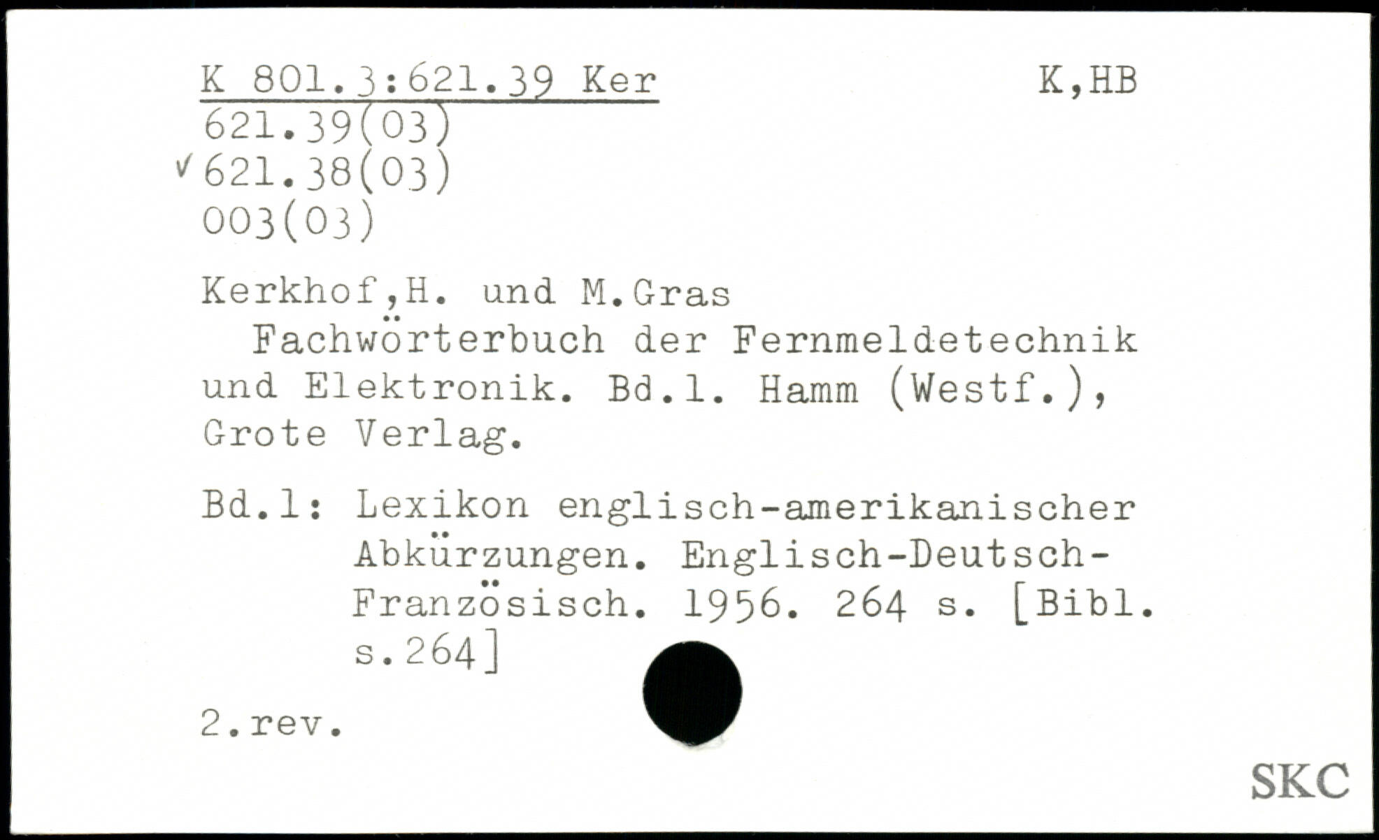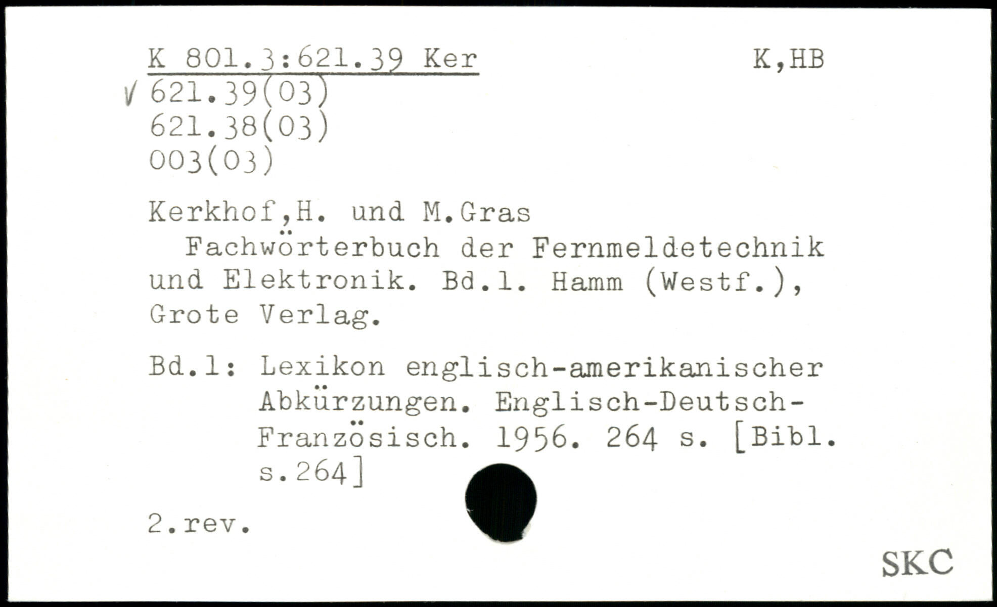 Fachwörterbuch der Fernmeldetechnik und Elektronik. Bd.l. Hamm (Westf.), Grote Verlag. Bd.l: Lexikon englisch-amerikanischer Abkürzungen. Englisch-Deutsch-Französisch. 1956.