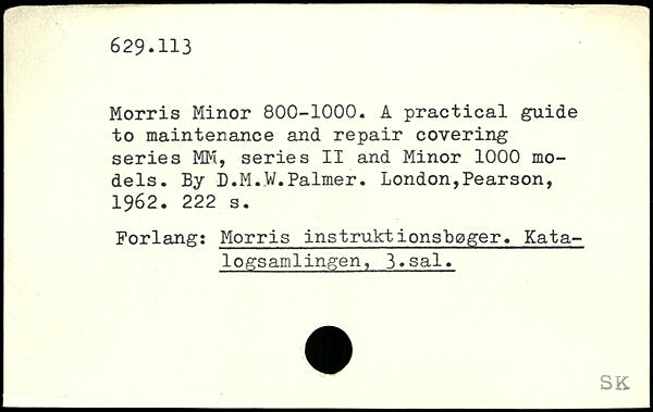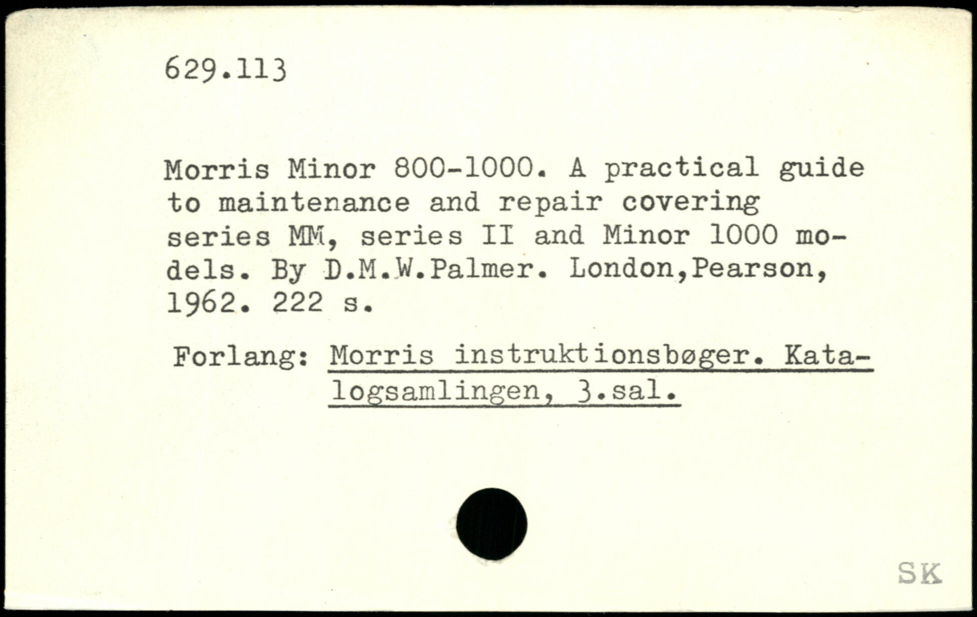 Morris Minor 800-1000. A practical guide to maintenance and repair covering series MM, series II and Minor 1000 models. By D.M.W.Palmer.