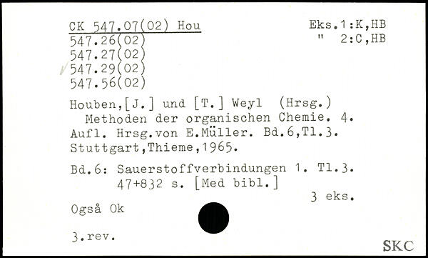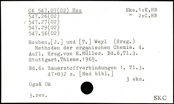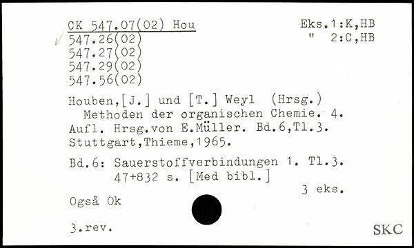 Houben,[J.] und [T.] Weyl (Hrsg.) Methoden der organischen Chemie.