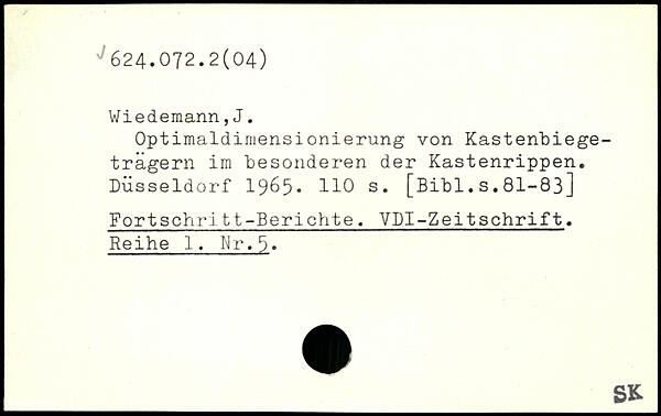 Optimaldimensionierung von Kastenbiege-trägern im besonderen der Kastenrippen. Düsseldorf 1965. HO s.