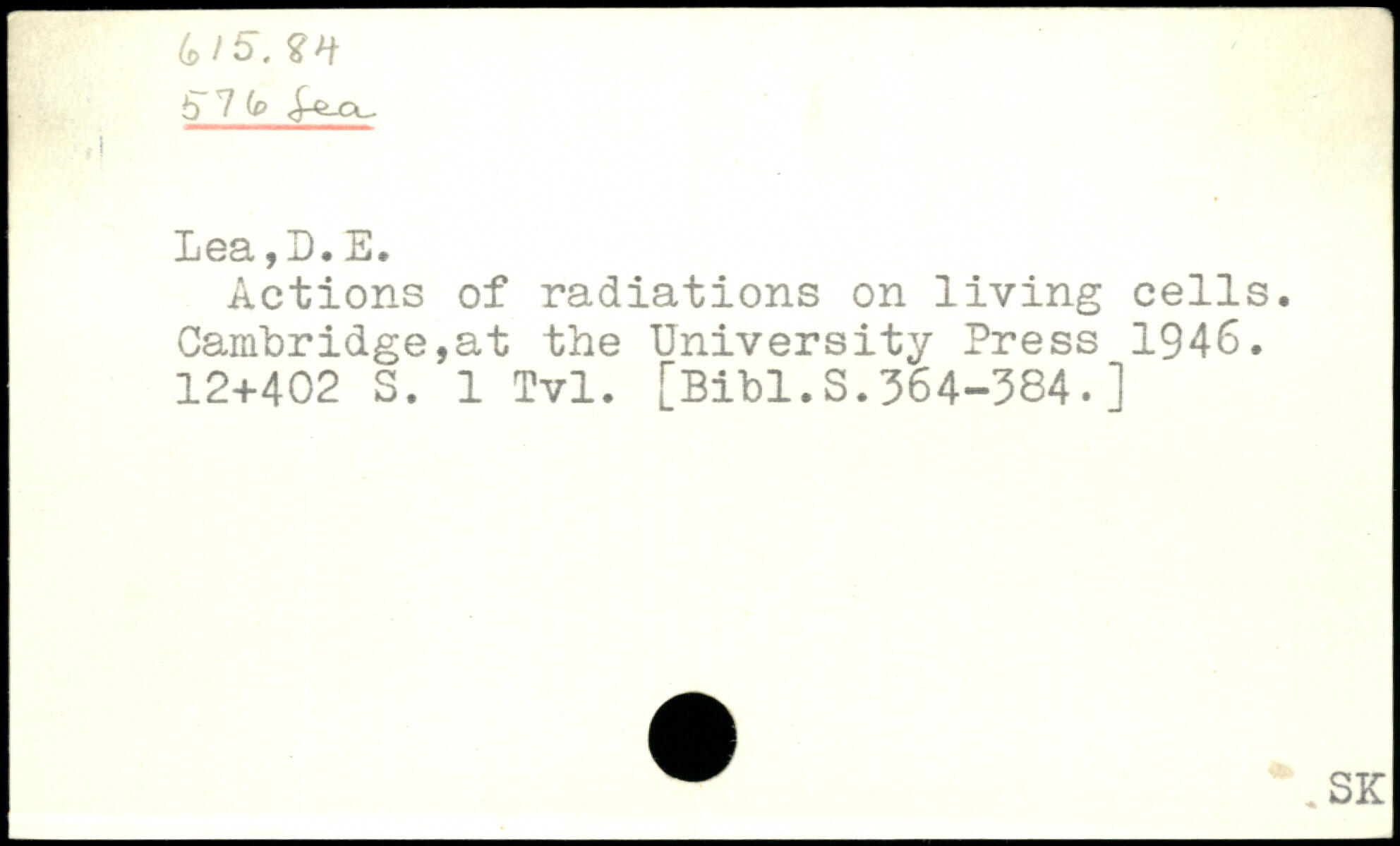 Actions of radiations on living cells. Cambridge,at the University Press 1946.