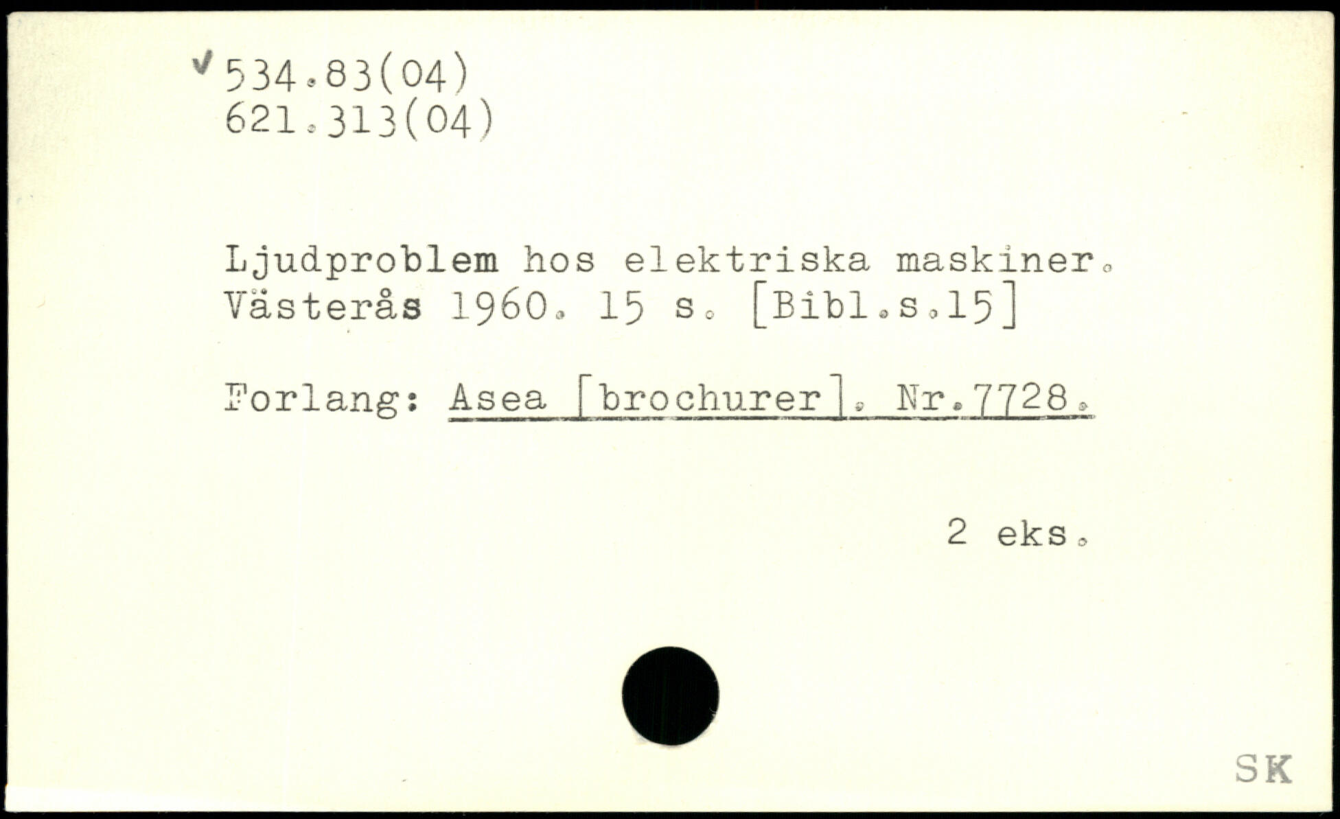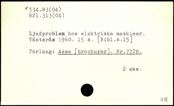 Ljudproblem hos elektriska maskiner,, Västerås 1960