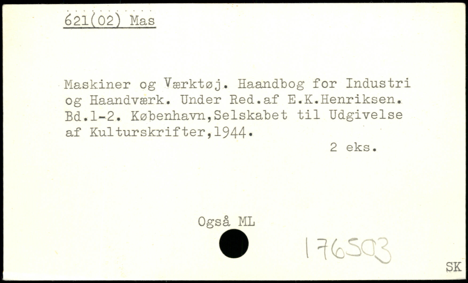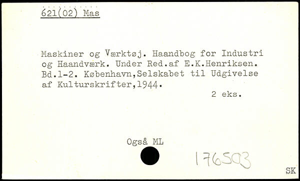Maskiner og Værktøj. Haandbog for Industri og Haandværk. Under Red.af E.K.Henriksen.