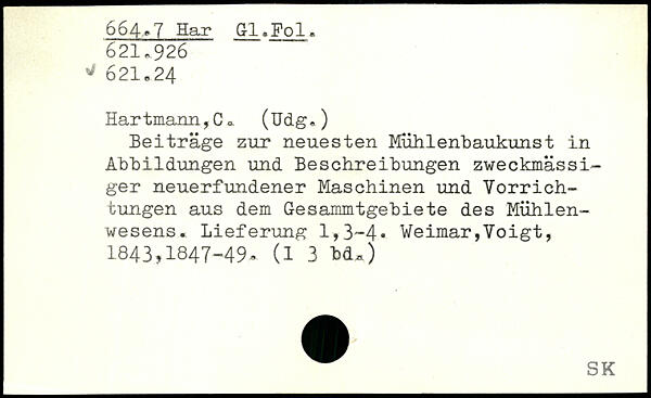 Beiträge zur neuesten Mühlenbaukunst in Abbildungen und Beschreibungen zweckmässiger neuerfundener Maschinen und Vorrichtungen aus dem Gesammtgebiete des Mühlenwesens. Lieferung 1,3-4.