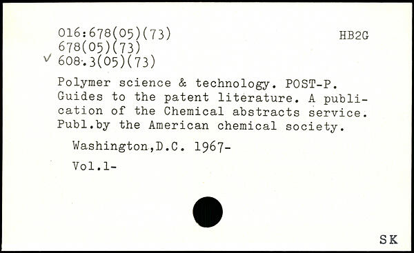 Polymer science & technology. POST-P. Guides to the patent literature. A publication of the Chemical abstracts service.