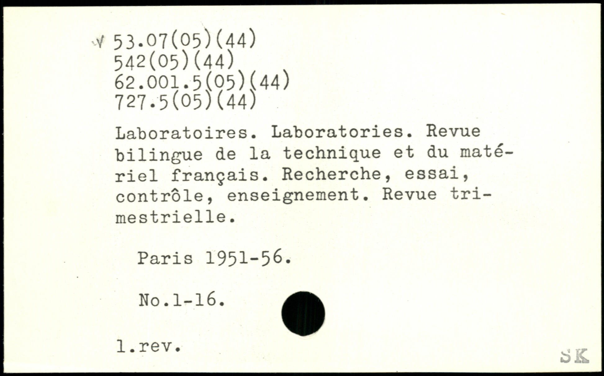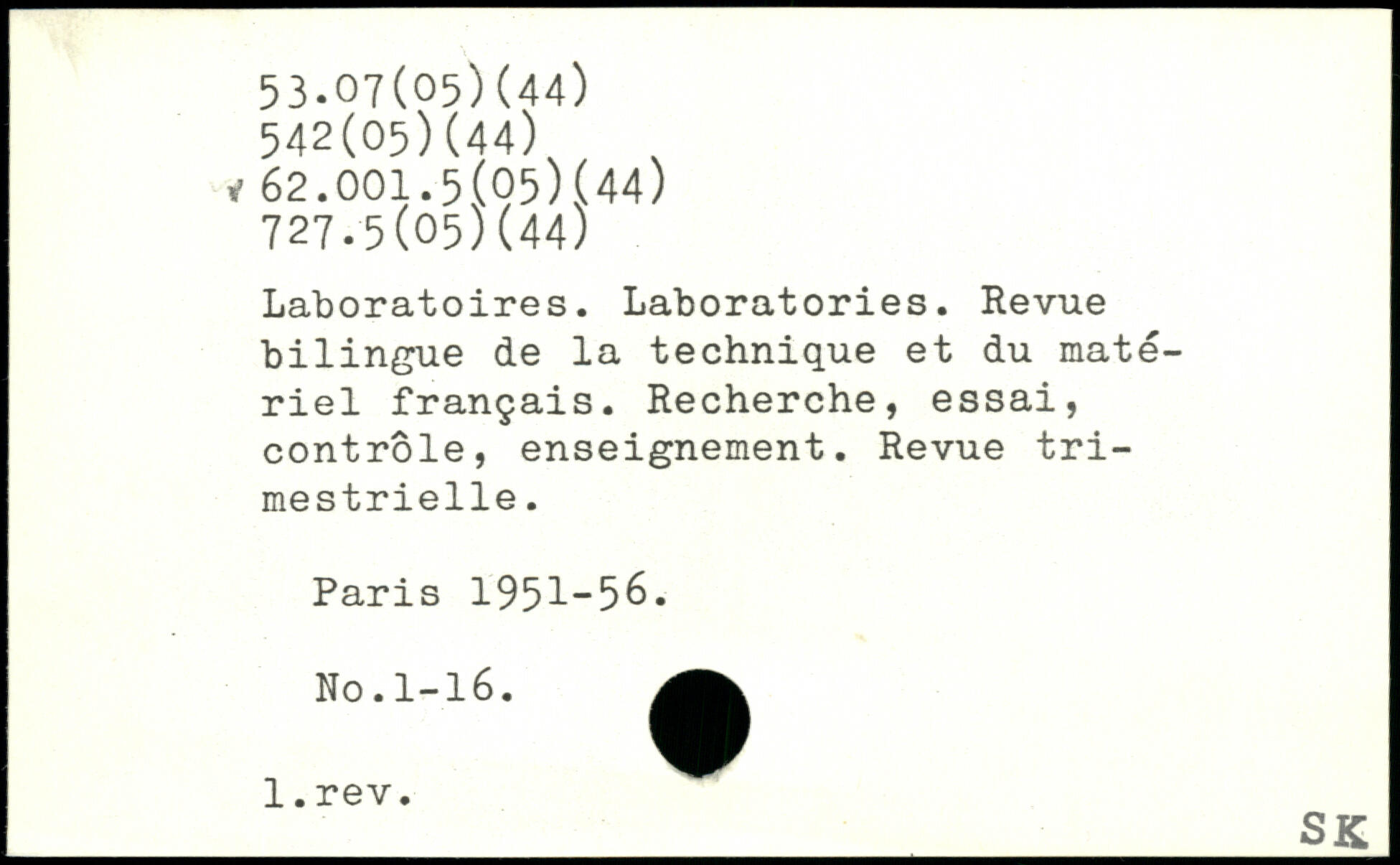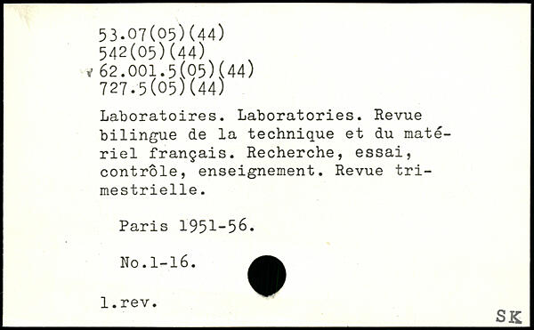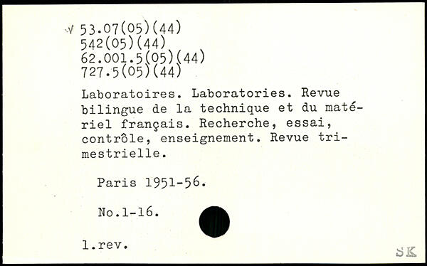 Laboratoires. Laboratories. Revue bilingue de la technique et du matériel français. Recherche, essai, contrôle, enseignement. Revue trimestrielle.