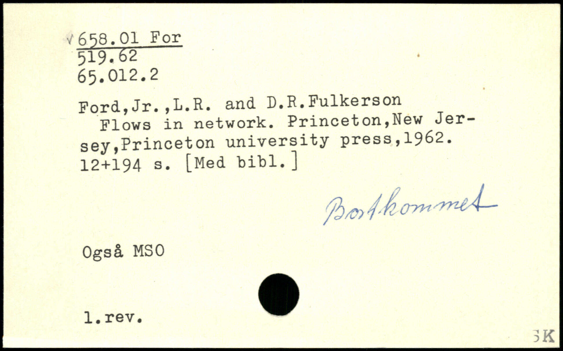 Ford,Jr.,L.R. and D.R.Fulkerson Flows in network.