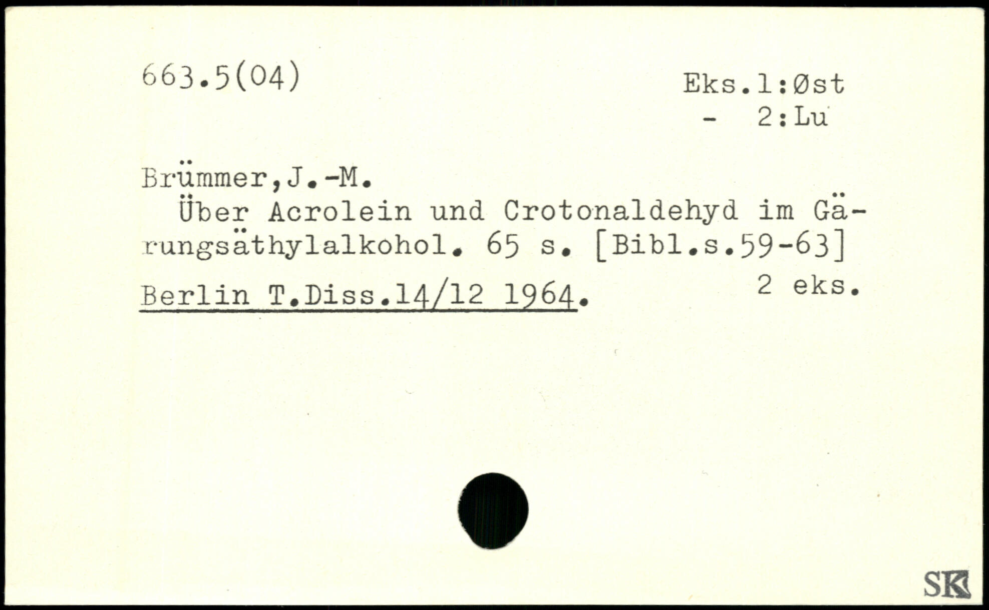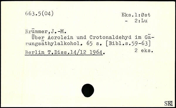 Über Acrolein und Crotonaldehyd im Ga~ rungsathylalkohol.