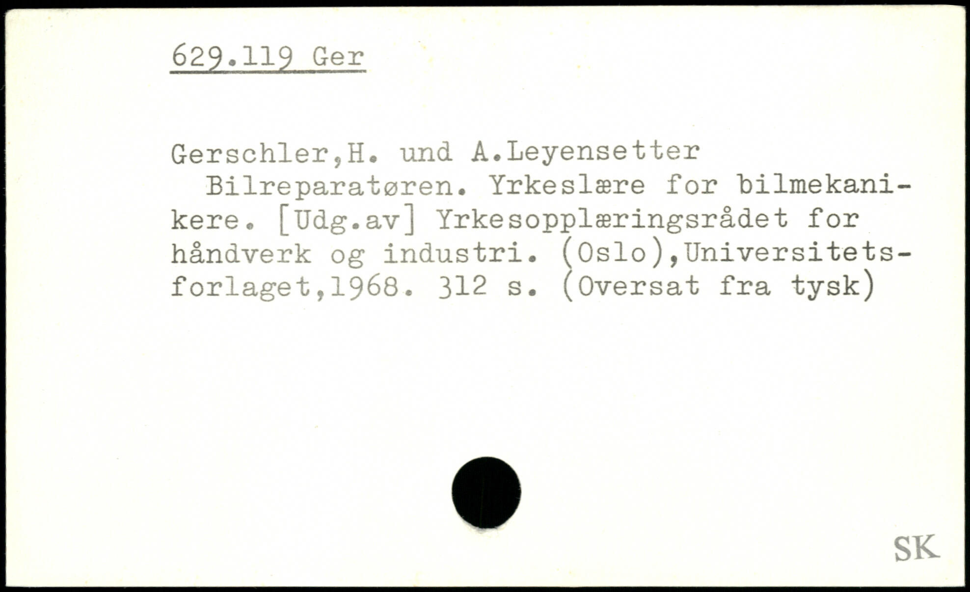 Bilreparatøren. Yrkeslære for bilmekanikere. [Udg.av] Yrkesopplæringsrådet for håndverk og industri. (Oslo),Universitetsforlaget , 1968.