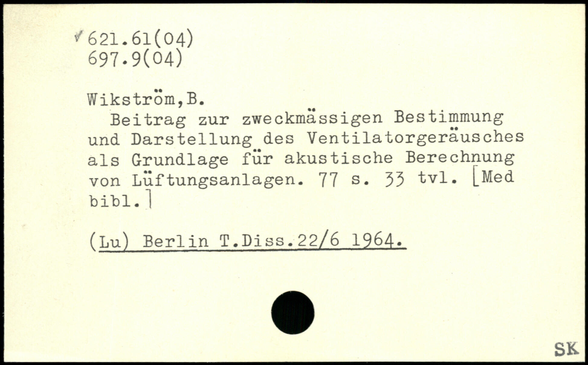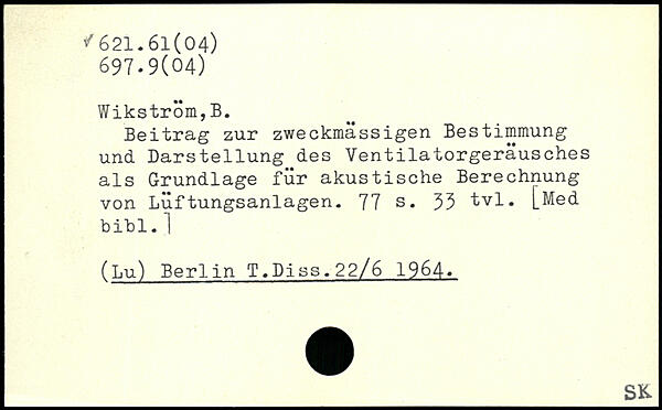 Beitrag zur zweckmässigen Bestimmung und Darstellung des Ventilatorgeräusches als Grundlage für akustische Berechnung von Luftungsanlagen.