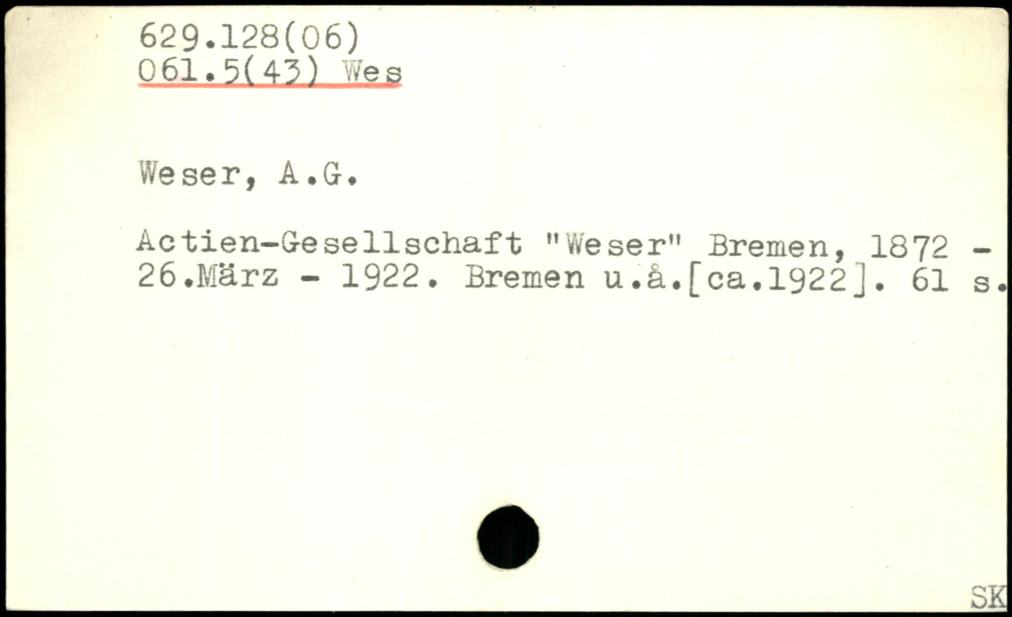 Actien-Oesellschaft "Weser" Bremen, 1872 -26.März - 1922. Bremen u.ä.[ca,1922j.
