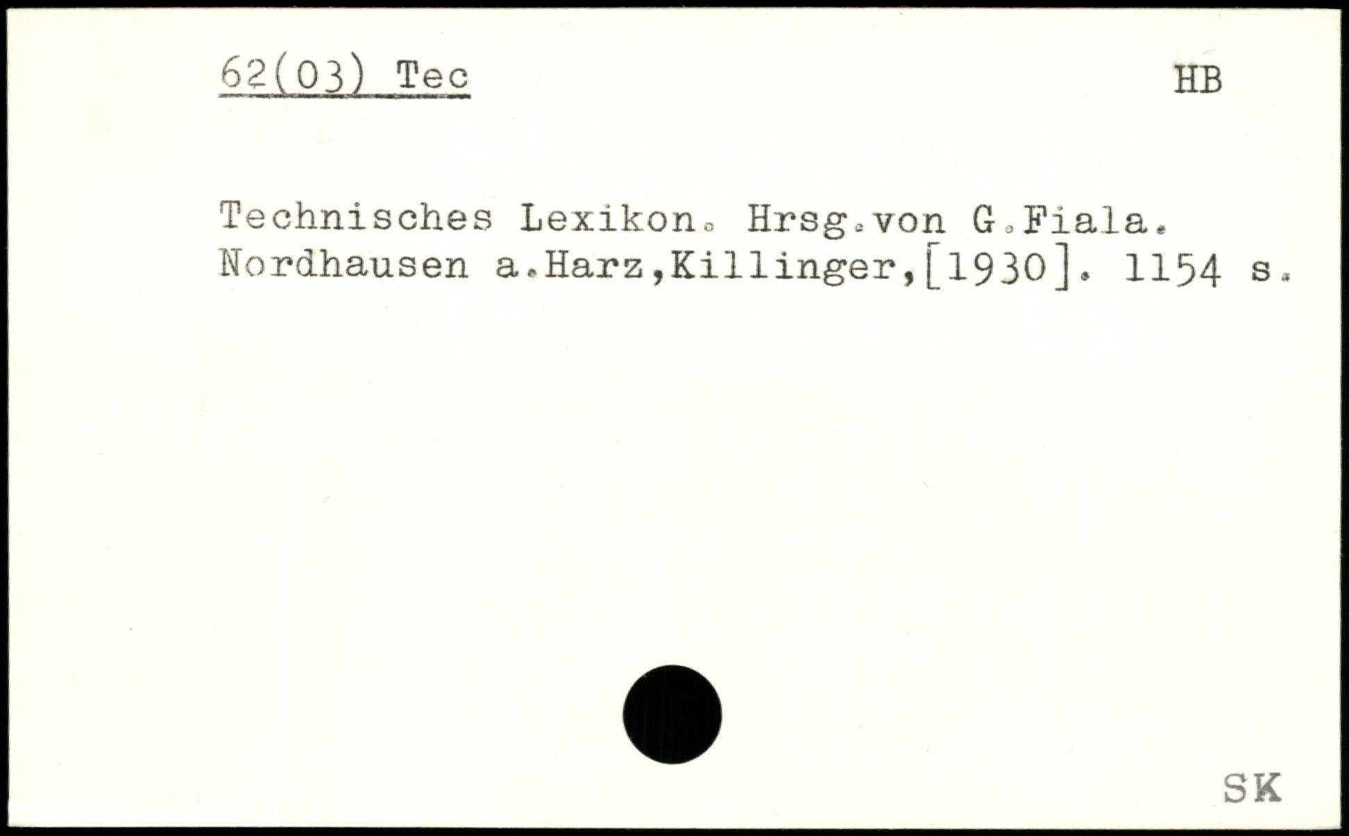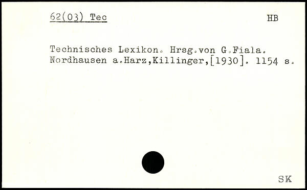 Technisches Lexikon., Hrsg,von GoFiala, Nordhausen a,Harz,K1111nger,[1930]