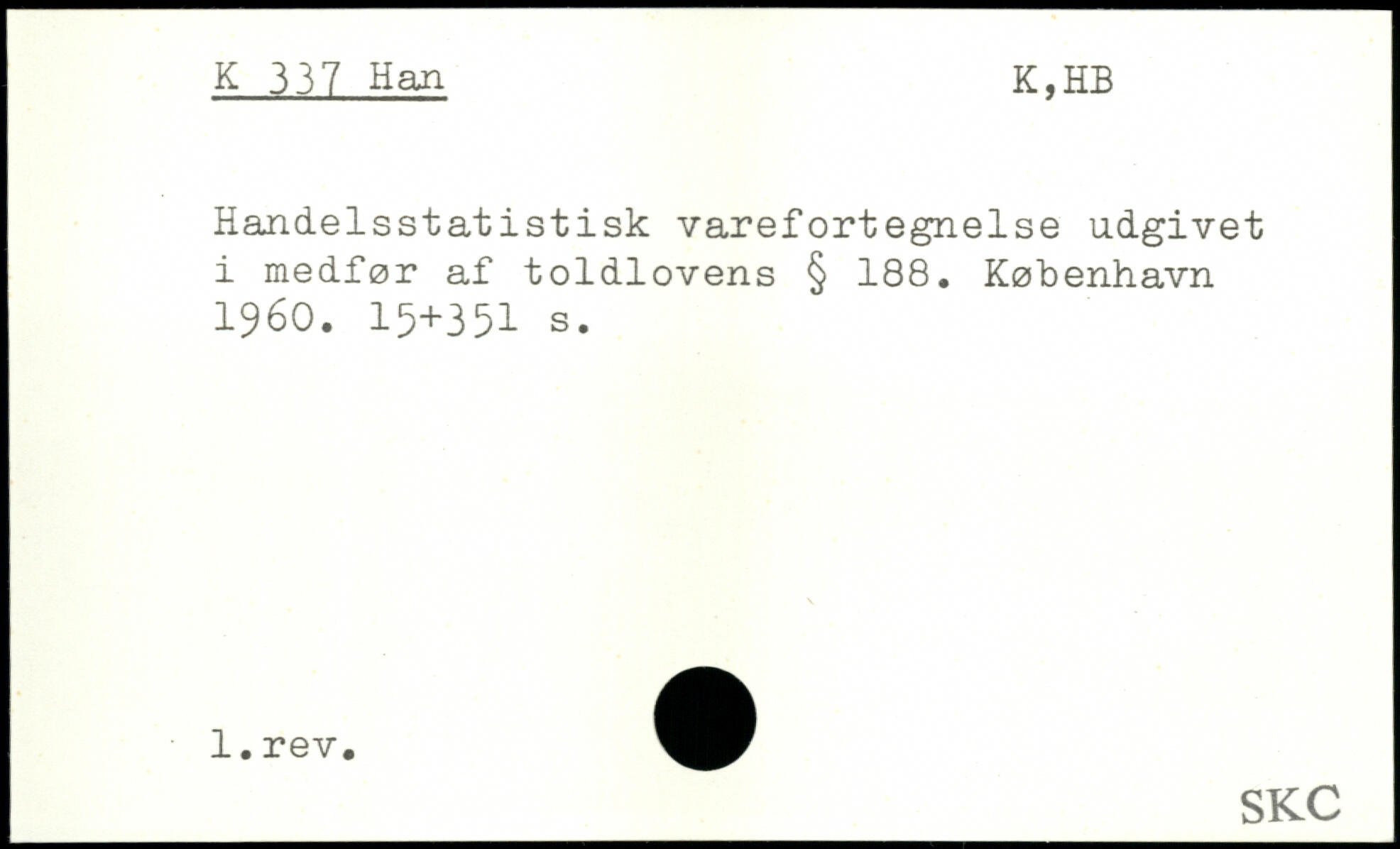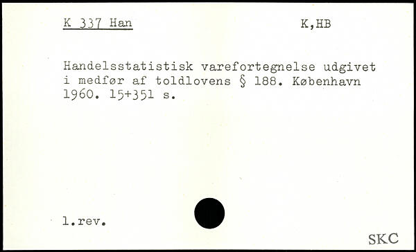 Handelsstatistisk varefortegnelse udgivet i medfør af toldlovens § 188.