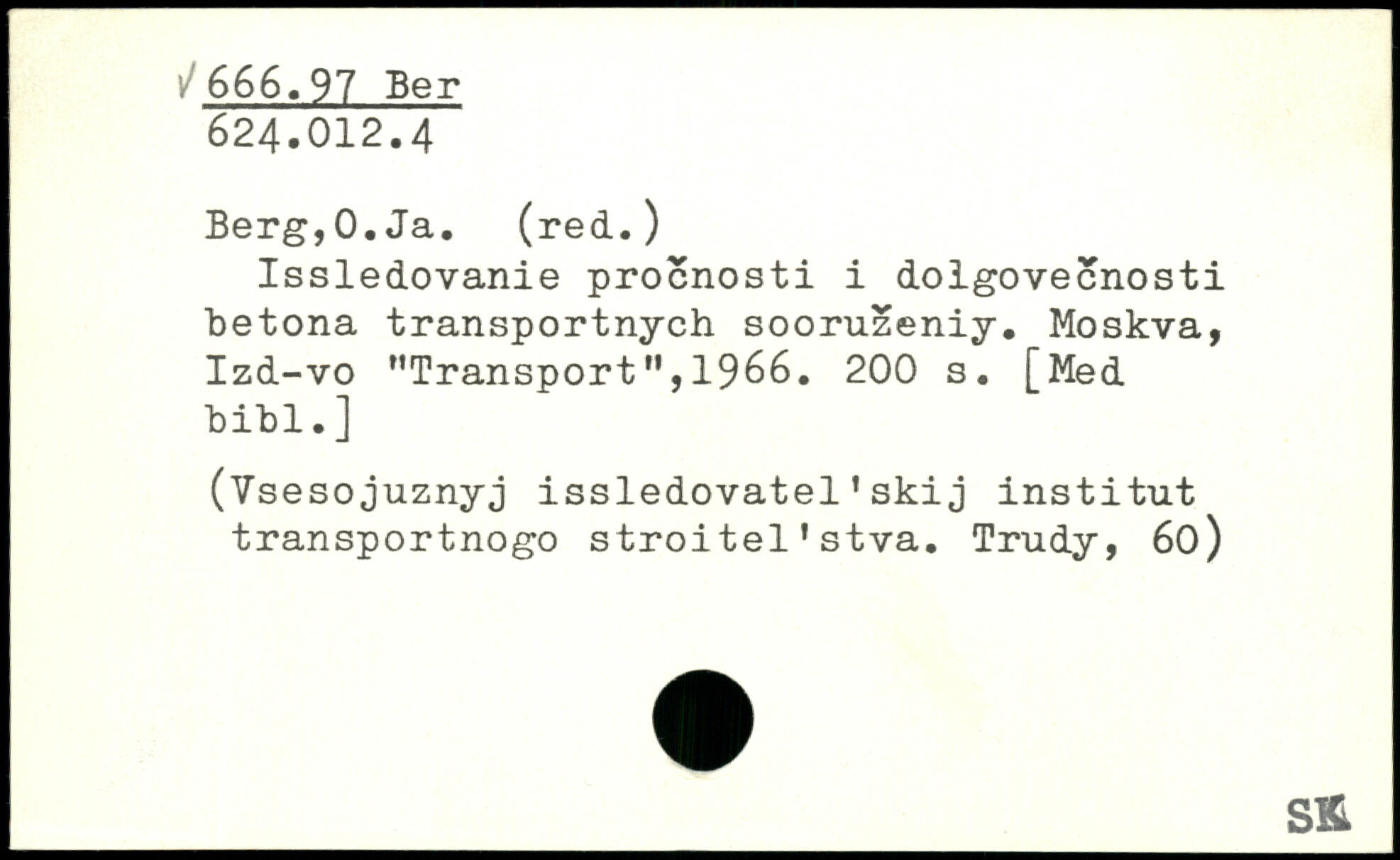 Berg,O.Ja. (red.) Issledovanie procnosti i dolgovecnosti betona transportnych sooruzeniy. Moskva, Izd-vo ”Transport",1966.