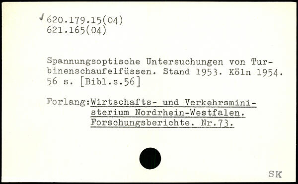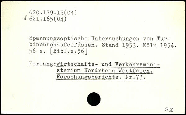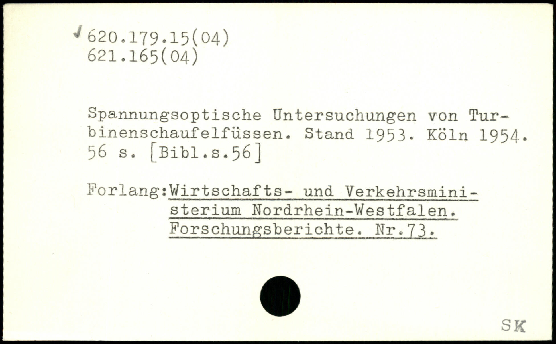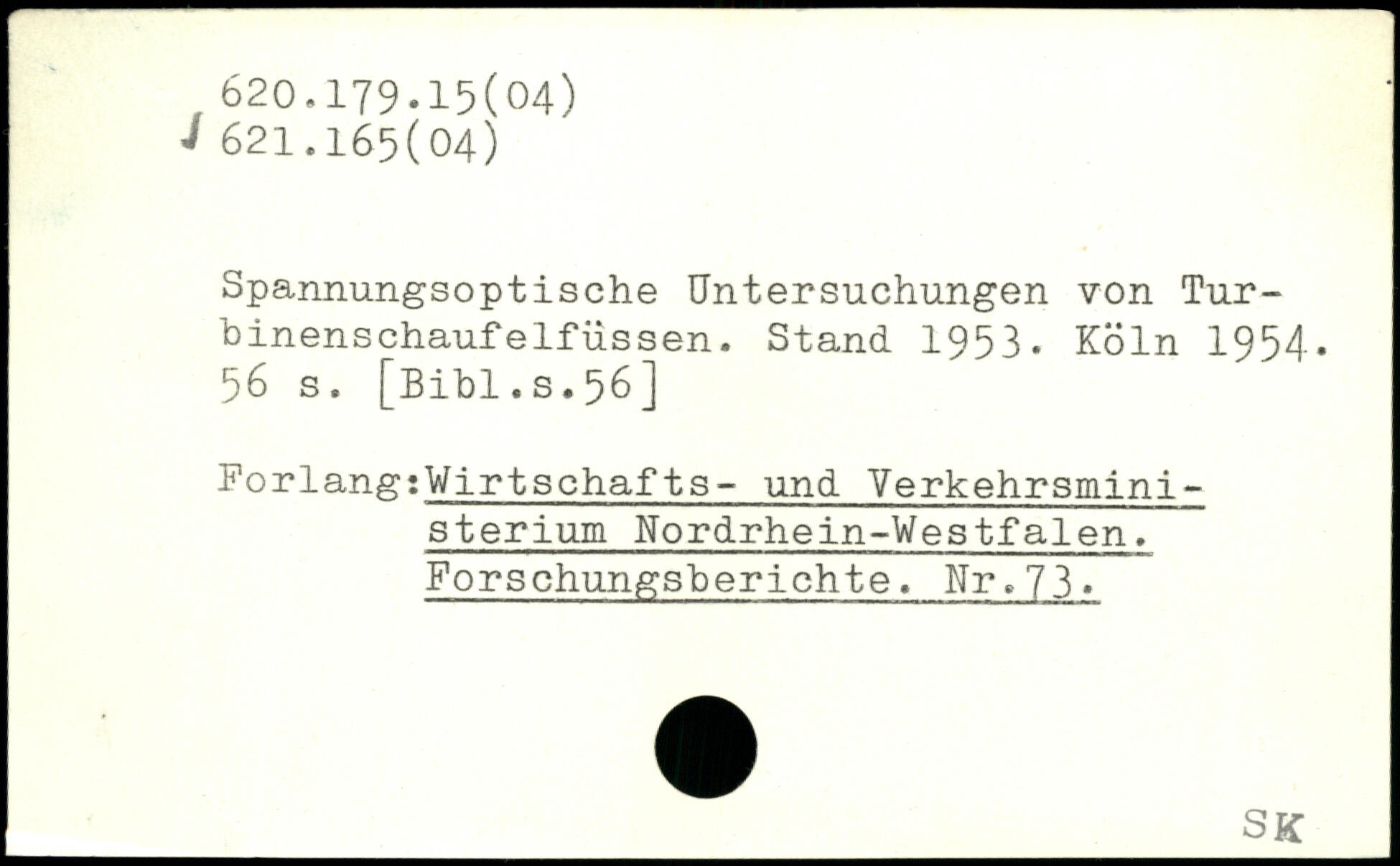 Spannungsoptische Untersuchungen von Turbinenschaufelfüssen. Stand 1953.