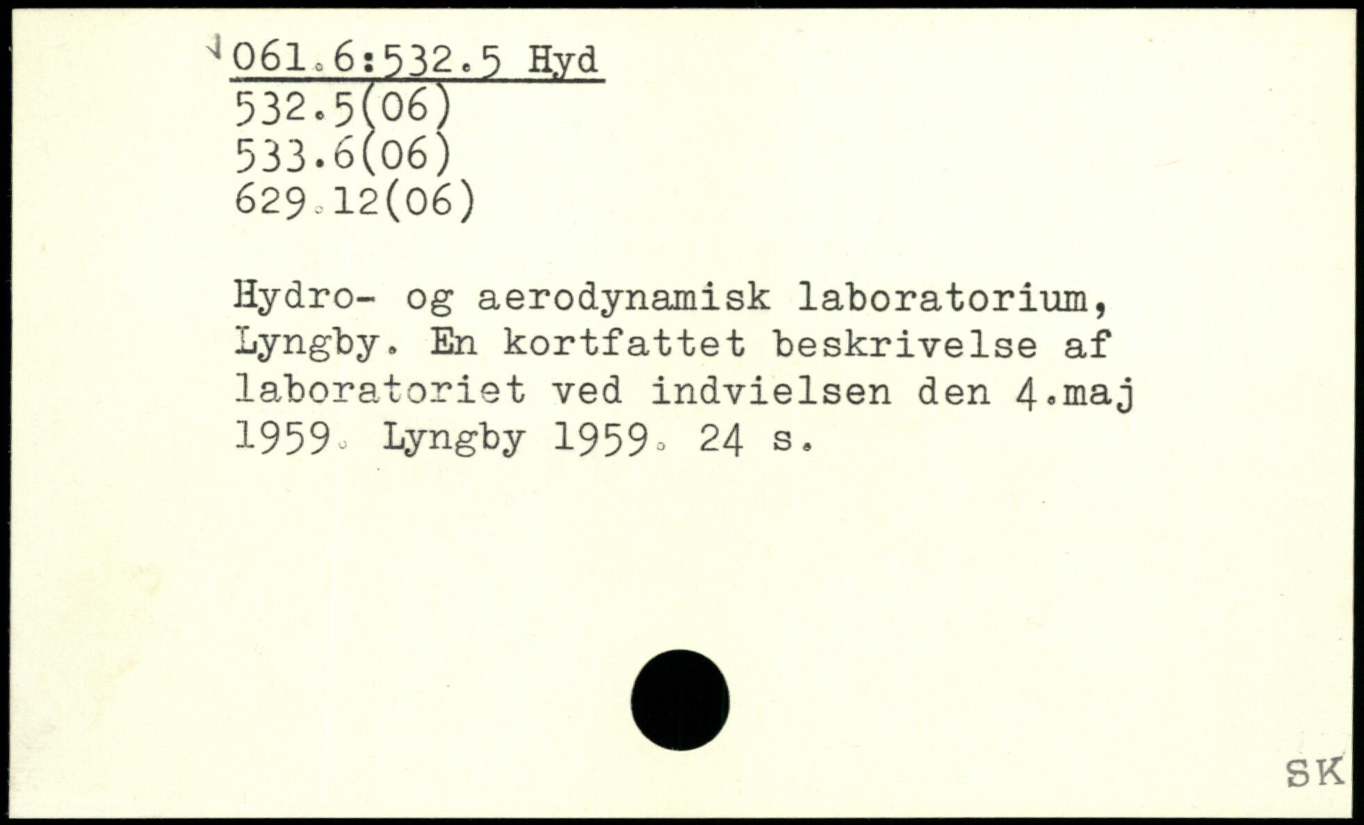 Hydro- og aerodynamisk laboratorium, Lyngby. En kortfattet beskrivelse af laboratoriet ved indvielsen den 4,maj 1959- Lyngby 1959