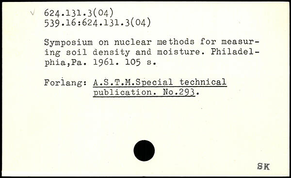 Symposium on nuclear methods for measuring soil density and moisture. Philadelphia,Pa. 1961.