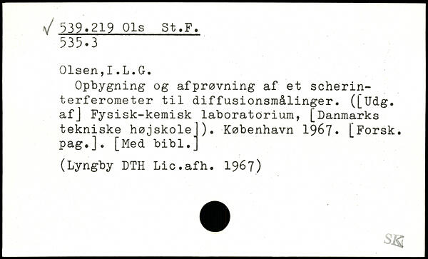 Opbygning og afprøvning af et scherin-terferometer til diffusionsmålinger. ([Udg. afj Fysisk-kemisk laboratorium, [Danmarks tekniske højskole_).