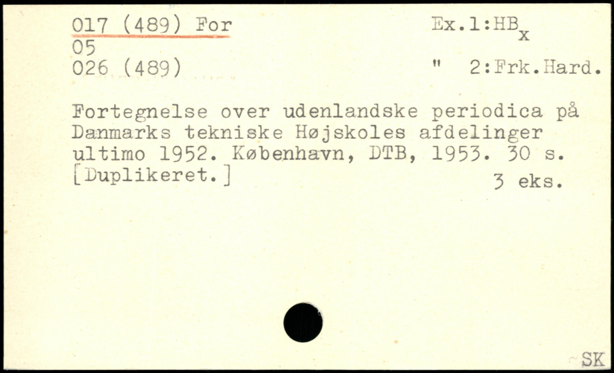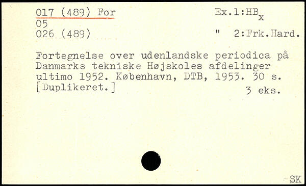 Fortegnelse over udenlandske periodica på Danmarks tekniske Højskoles afdelinger ultimo 1952.