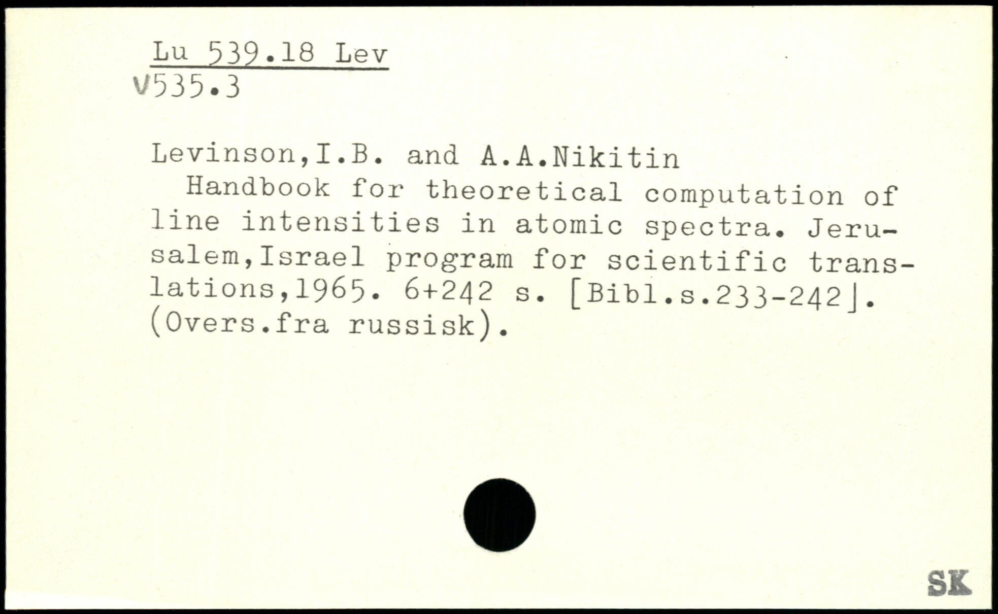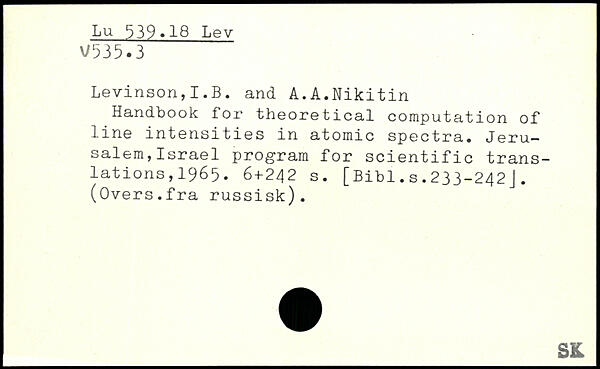 Handbook for theoretical computation of line intensities in atomic spectra. Jerusalem, Israel program for scientific translations ,1965.