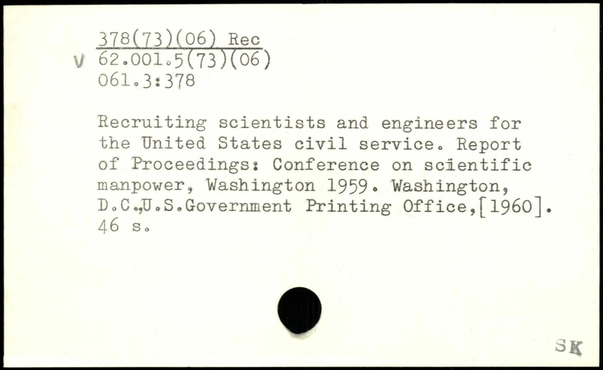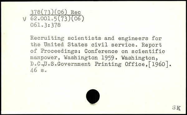 Recruiting scientists and engineers for the United States civil service. Report of Proceedings: Conference on scientific manpower