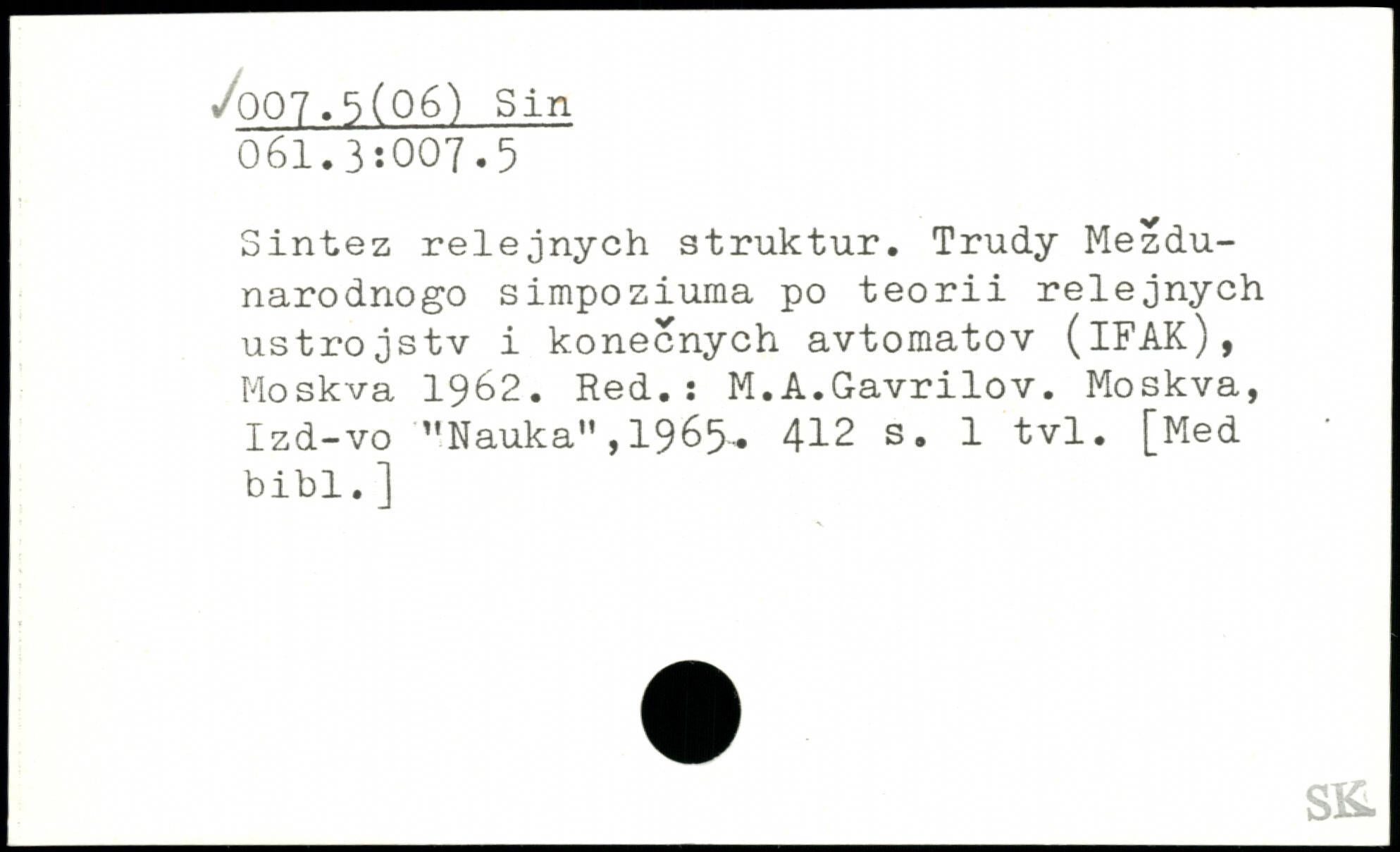 Sintez relejnych struktur. Trudy Mezdu-narodnogo simpoziuraa po teorii relejnych ustrojstv i konecnych avtomatov (iFAK)