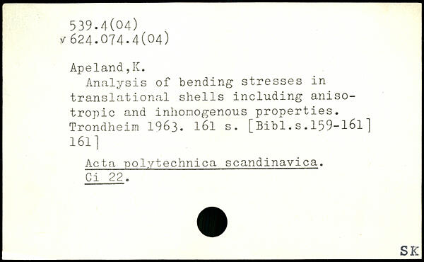 Analysis of bending stresses in translational shells including anisotropic and inhonogenous properties.