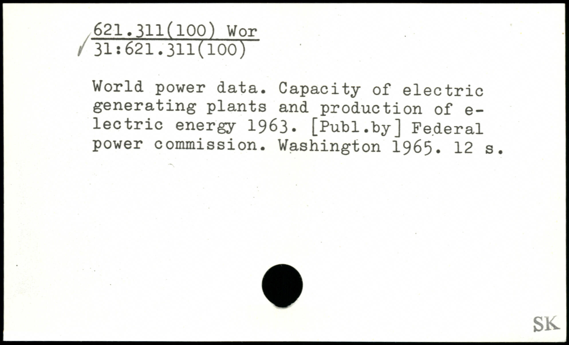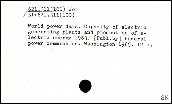 World power data. Capacity of electric generating plants and production of e-lectric energy 1963.