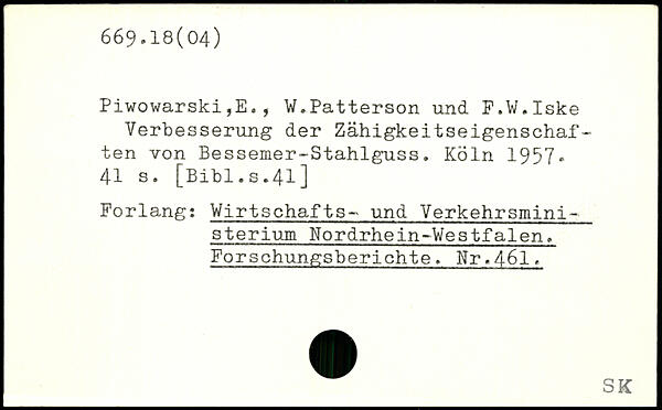 Piwowarski,E., W.Patterson und F.W.Iske Verbesserung der Zähigkeitseigenschaf-ten von Bessemer-Stahlguss.