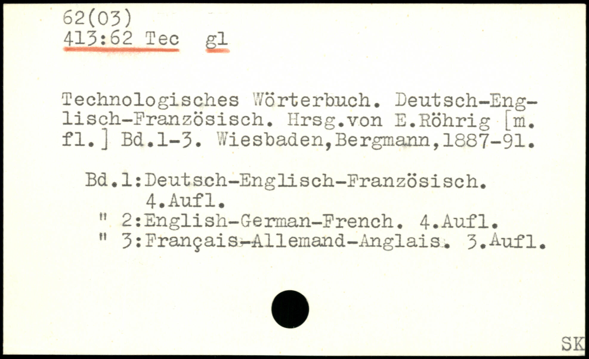 Technologisches Wörterbuch. Deutsch-Eng-lisch-Eranzösisch. Hrsg.von E.Böhrig [m. fl.]