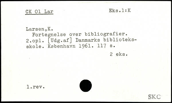 Fortegnelse over bibliografier. 2.opl. [Udg.af] Danmarks biblioteksskole.