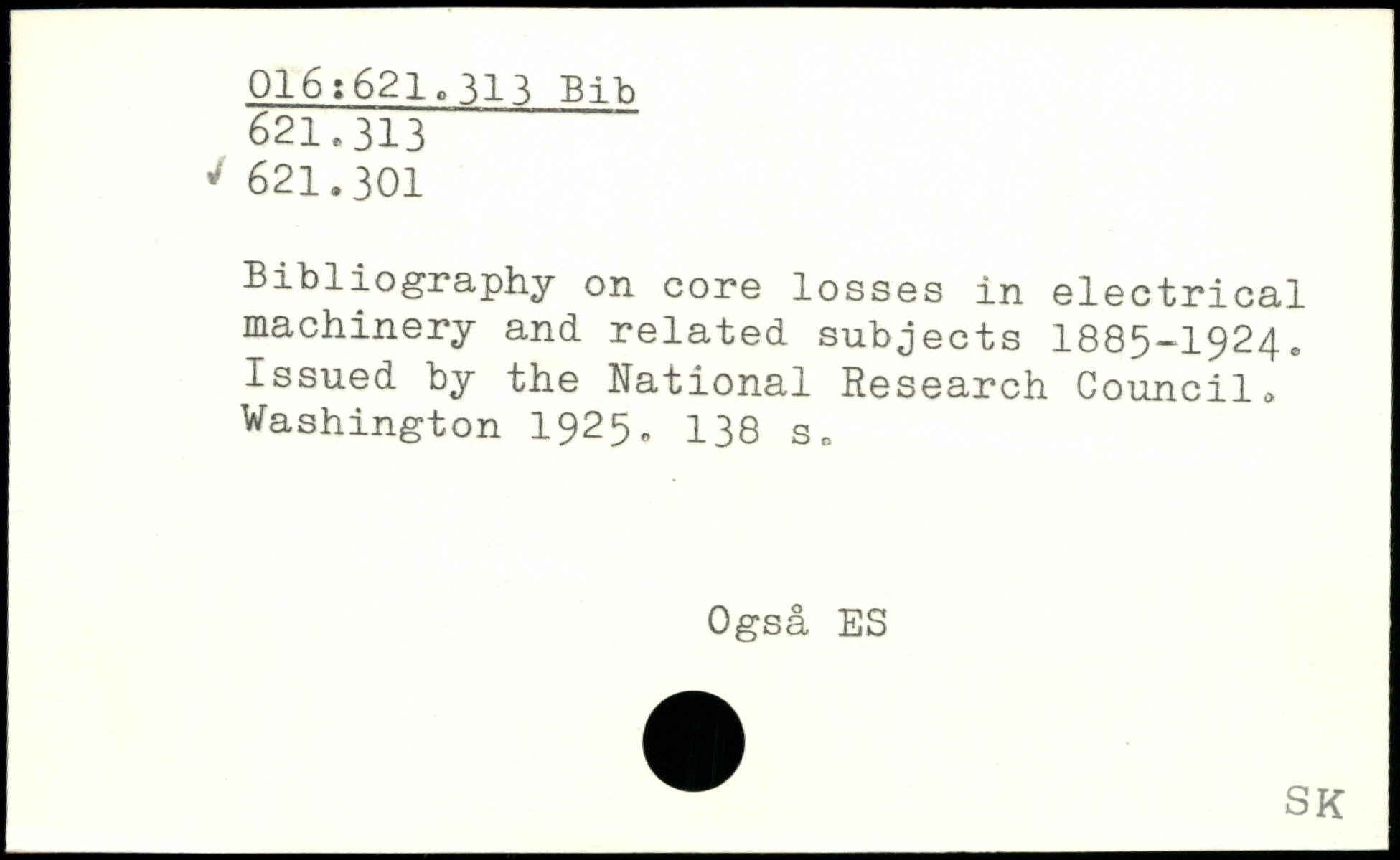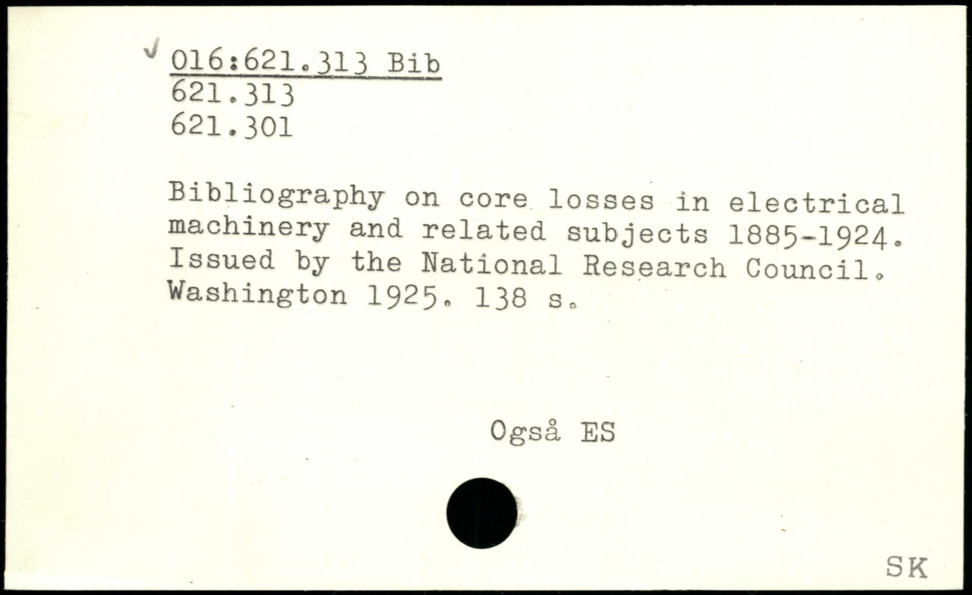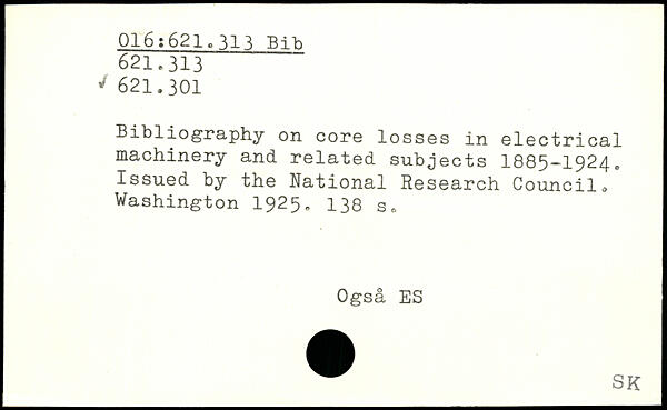 Bibliography on core losses in electrical machinery and related subjects 1885-1924. Issued by the National Research Council