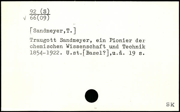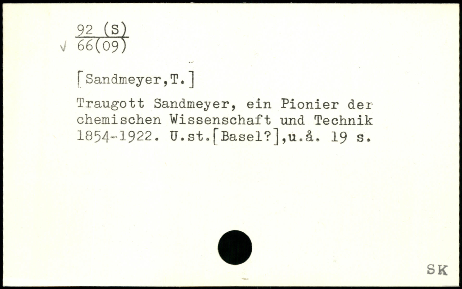 fSandmeyer,T.] Traugott Sandmeyer, ein Pionier der chemischen Wissenschaft und Technik 1854-1922. ü.st.[Basel?],u.ä.
