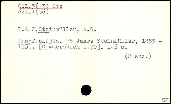 L.& Q.Steinmüller, A.G. Lampfanlagen. 75 Jahre Steinmüller, 1855 -1930. [Gummersbach 1930j.