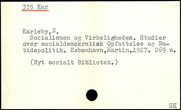 Socialismen og Virkeligheden, Studier over socialdemokratisk Opfattelse og Nu-tidspolitik,. København, Mart in, JL92 7