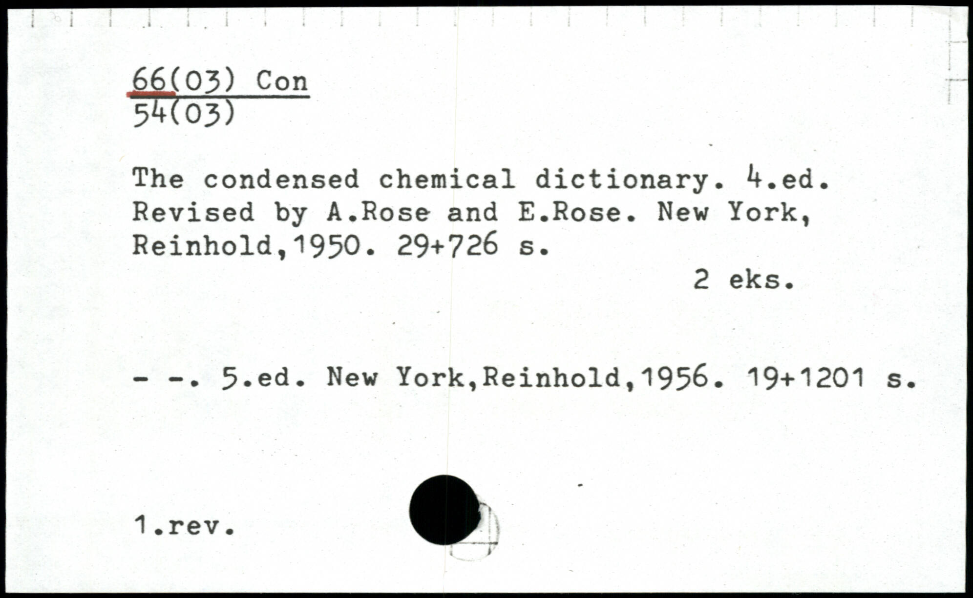 The condensed chemical dictionary. .+.ed. Revised by A.Rose and E.Rose.