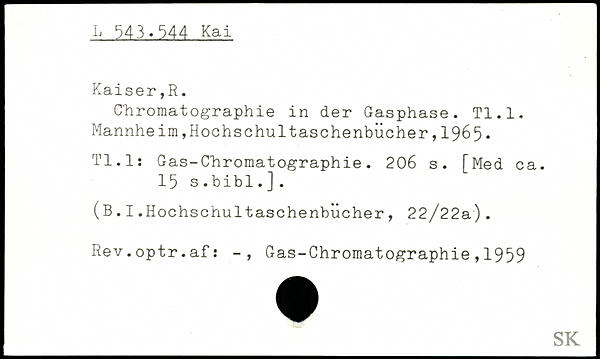 Chromatographie in der Gasphase. Tl.l. Mannheim,Hochschuitaschenbücher,196 5. Tl.l: Gas-Chromatographie.