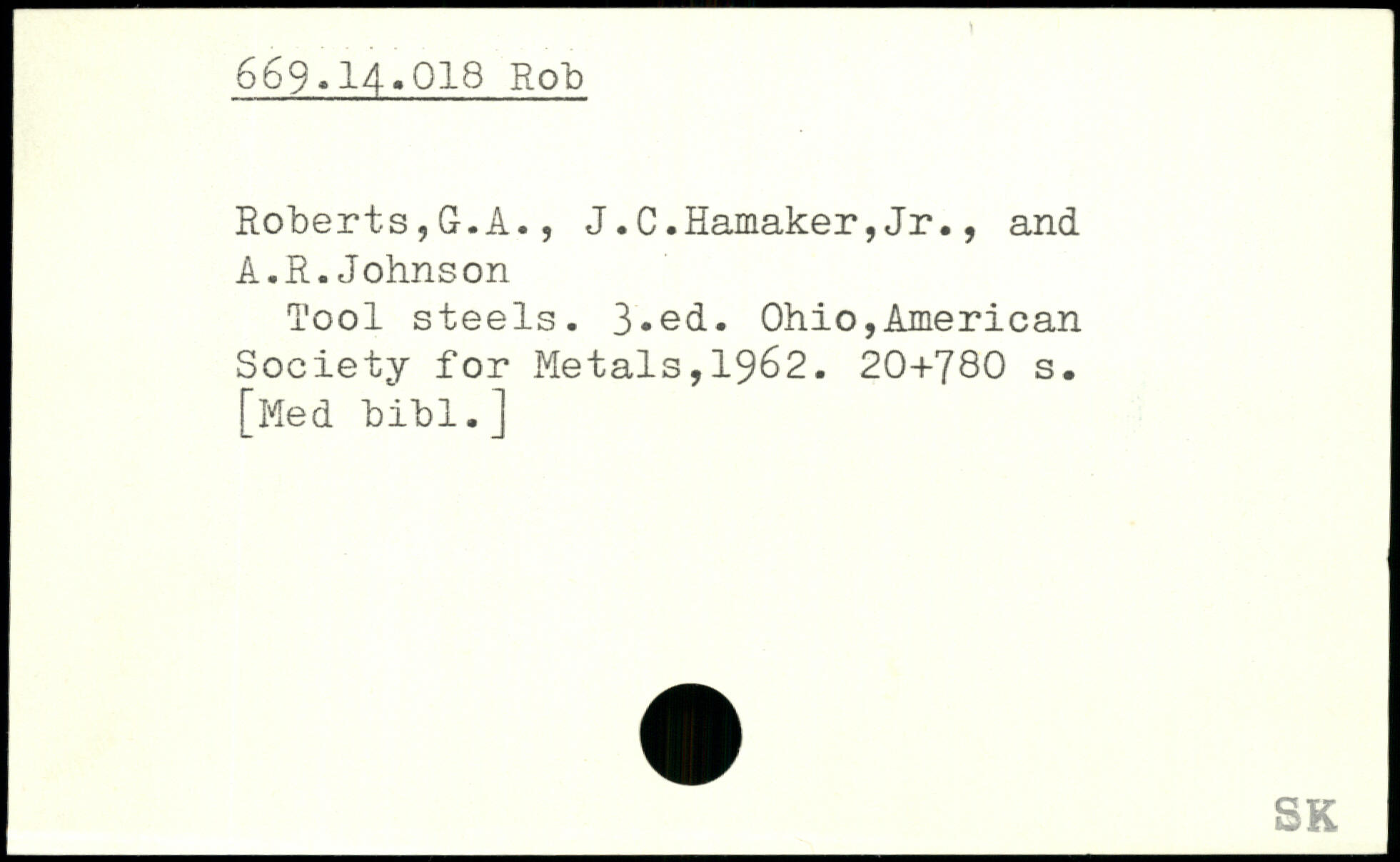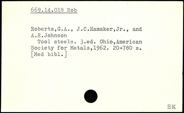 Roberts,G.A., J.C.Hamaker,Jr., and A.R.Johnson Tool steels.